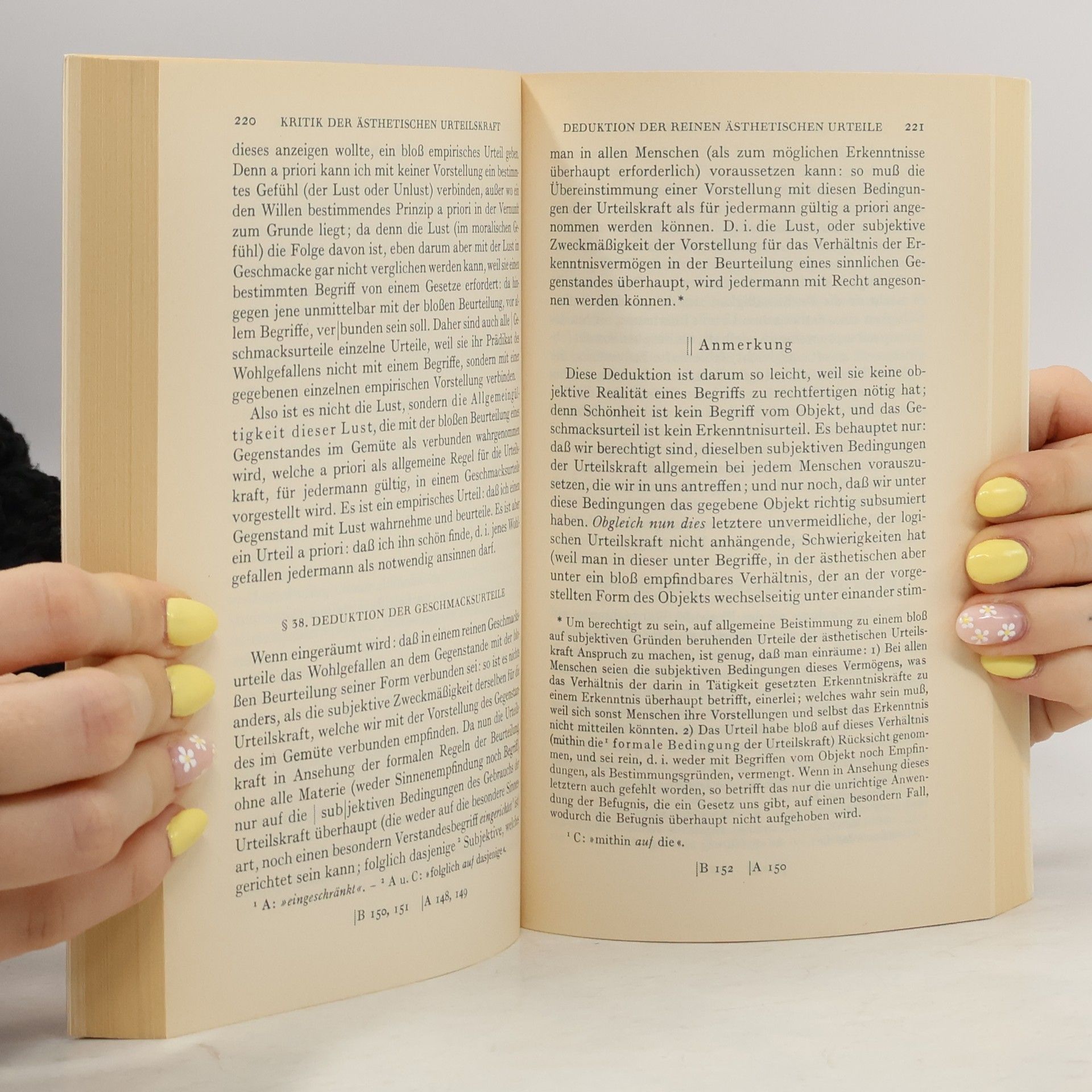 Mit der Kritik der Urteilskraft (1790) bringt Kant seine kritischen Unter-suchungen zu den Möglichkeiten und Grenzen der reinen Erkenntnisvermögen a priori zum Abschluß. Der Schrift liegt die Einsicht zugrunde, daß auch die reflektierende Urteilskraft auf einem Prinzip a priori beruht, nämlich dem der Zweckmäßigkeit. Im ersten Hauptteil widmet sich Kant der ästhetischen Beurteilung der Zweckmäßigkeit der Formen der Natur für unsere Erkenntnisvermögen. Das reine Geschmacksurteil beruht danach auf einem Gefühl der Lust oder Unlust, das sich bei der Beurtei-lung einer gegebenen Vorstellung als zweckmäßig bzw. unzweckmäßig einstellt. Das Gefühl des Erhabenen beruht dagegen auf der Beurteilung eines Gegenstandes als unzweckmäßig für unsere Erkenntnisvermögen, eine Unzweckmäßigkeit, die jedoch ihrerseits aus bestimmten Gründen als zweckmäßig empfunden wird. Im zweiten Hauptteil erörtert Kant die Frage, inwieweit wir der Natur selbst eine objektive Zweckmäßigkeit ihrer Formen zuschreiben können. Im Zentrum stehen dabei die Begriffe des Naturzwecks und der sich selbst organisierenden Wesen. Auf eine teleologische Beurteilung der Natur kann dort nicht verzichten werden, wo wir die Form des Gegenstandes durch den Naturmechanismus nicht erklären können. Kants Ausführungen münden in eine Ethikotheologie, die auf der Idee des Menschen als eines (moralischen) Endzwecks der Schöpfung gründet.