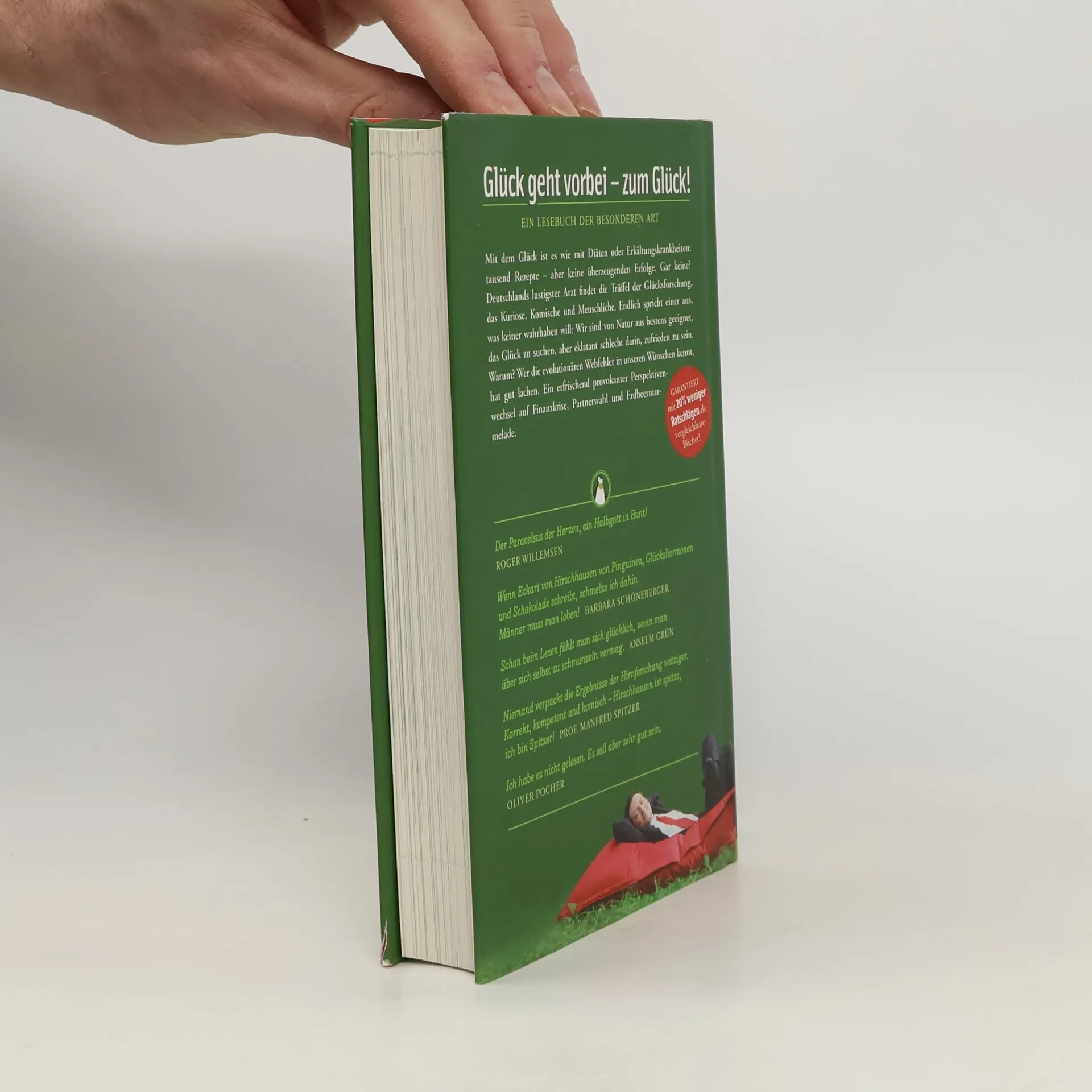 Glück geht vorbei - zum Glück!Mit dem Glück ist es wie mit Diäten oder Erkältungskrankheiten: tausend Rezepte - aber keine überzeugenden Erfolge. Gar keine? Deutschlands lustigster Arzt findet die Trüffel der Glücksforschung, das Kuriose, Komische und Menschliche. Endlich spricht einer aus, was keiner wahrhaben will: Wir sind von Natur aus bestens geeignet, das Glück zu suchen, aber eklatant schlecht darin, zufrieden zu sein. Warum? Wer die evolutionären Webfehler in unseren Wünschen kennt, hat gut lachen. Ein erfrischen provokanter Perpektivenwechsel auf Finanzkrise, Partnerwahl und Erdbeermarmelade.
