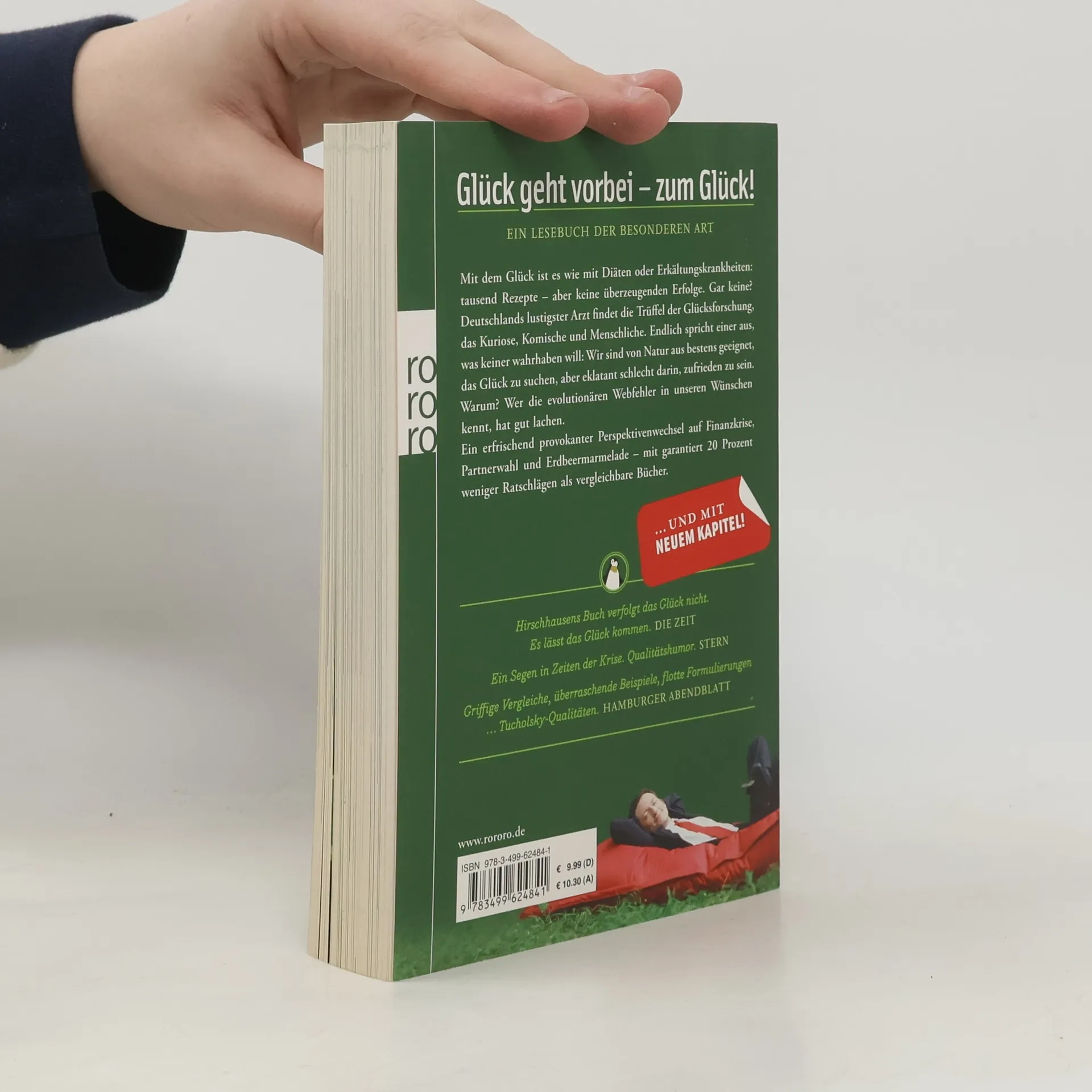 Der Bestseller mit neuem Kapitel!Glück geht vorbei – zum Glück!Ein Lesebuch der besonderen ArtMit dem Glück ist es wie mit Diäten oder Erkältungskrankheiten: tausend Rezepte – aber keine überzeugenden Erfolge. Gar keine? Deutschlands lustigster Arzt findet die Trüffel der Glücksforschung, das Kuriose, Komische und Menschliche. Endlich spricht einer aus, was keiner wahrhaben will: Wir sind von Natur aus bestens geeignet, das Glück zu suchen, aber eklatant schlecht darin, zufrieden zu sein. Warum? Wer die evolutionären Webfehler in unseren Wünschen kennt, hat gut lachen. Ein erfrischend provokanter Perspektivenwechsel auf Finanzkrise, Partnerwahl und Erdbeermarmelade – mit garantiert 20 Prozent weniger Ratschlägen als vergleichbare Bücher.«Hirschhausens Buch verfolgt das Glück nicht. Es lässt das Glück kommen.» Die Zeit «Ein Segen in Zeiten der Krise. Qualitätshumor.» STERN «Griffige Vergleiche, überraschende Beispiele, flotte Formulierungen …Tucholsky-Qualitäten.»Hamburger Abendblatt