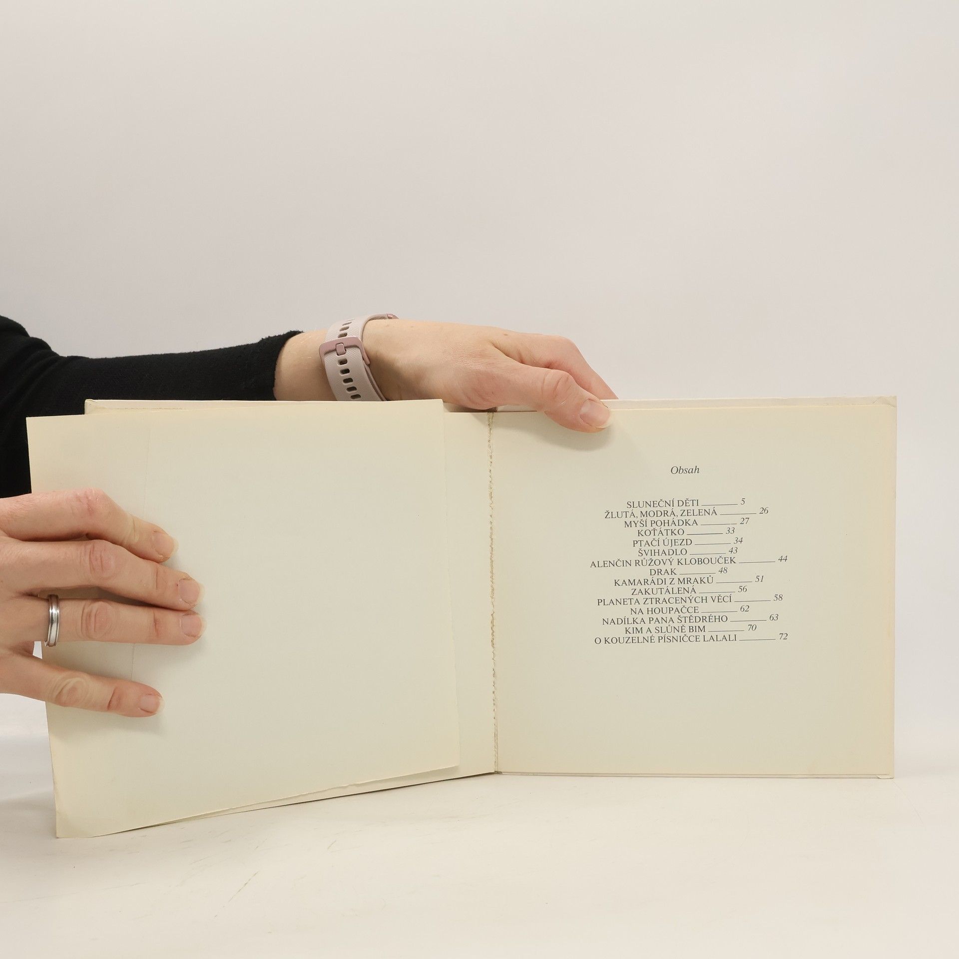 Osm prozaických a sedm veršovaných pohádek a vyprávění o hračkách, hrách, zvířatech a o světě dětí. Pohádky mají zvláštní osobitou strukturu a námětově vycházejí z tzv. nepohádkových témat, jež přibližují dětem.