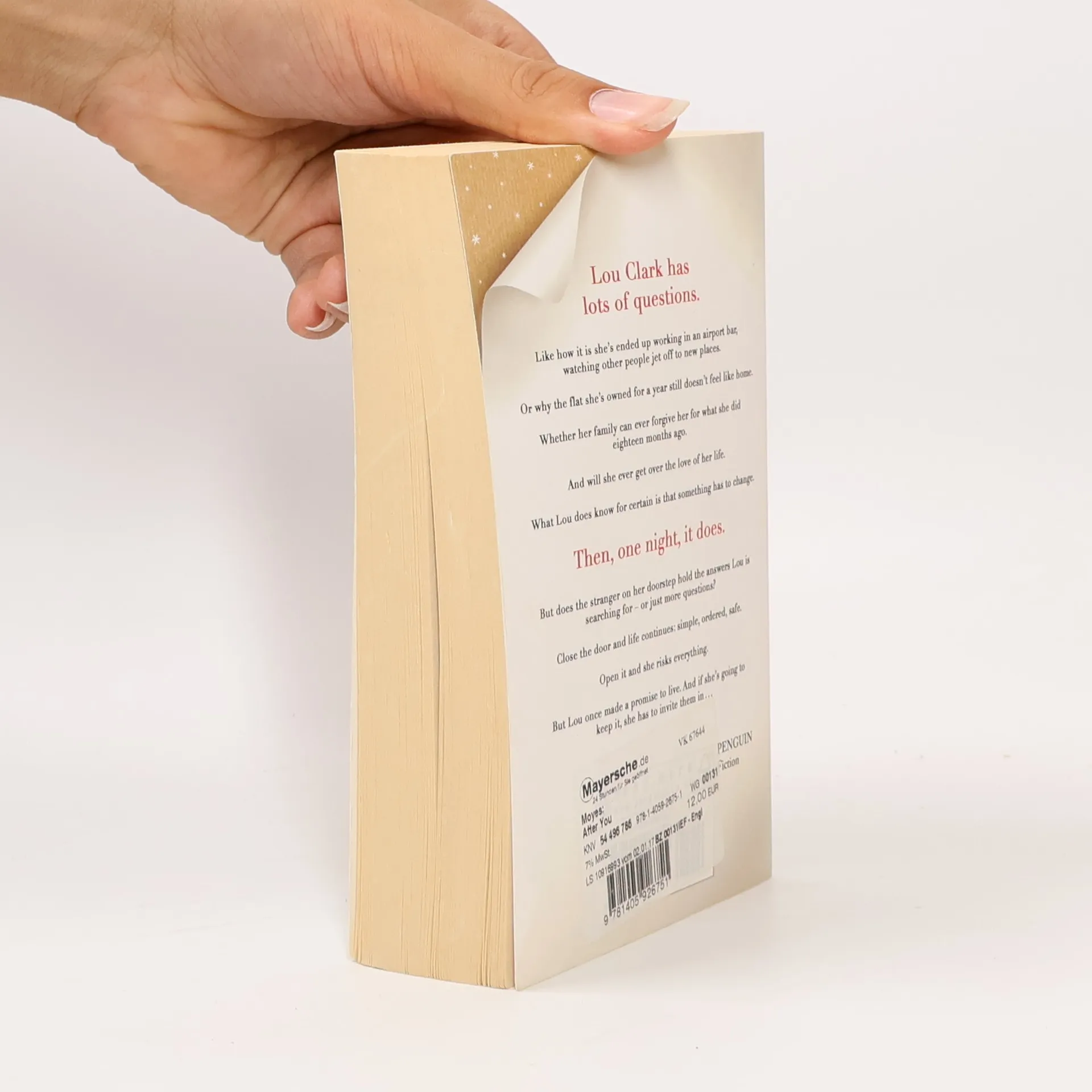 Lou Clark has lots of questions. Like how it is she's ended up working in an airport bar, watching other people jet off to new places. Or why the flat she's owned for a year still doesn't feel like home. Whether her family can ever forgive her for what she did eighteen months ago. And will she ever get over the love of her life. What Lou does know for certain is that something has to change. Then, one night, it does. But does the stranger on her doorstep hold the answers Lou is searching for - or just more questions ? Close the door and life continues : simple, ordered, safe. Open it and she risks everything. But Lou once made a promise to live. And if she's going to keep it, she has to invite them in...