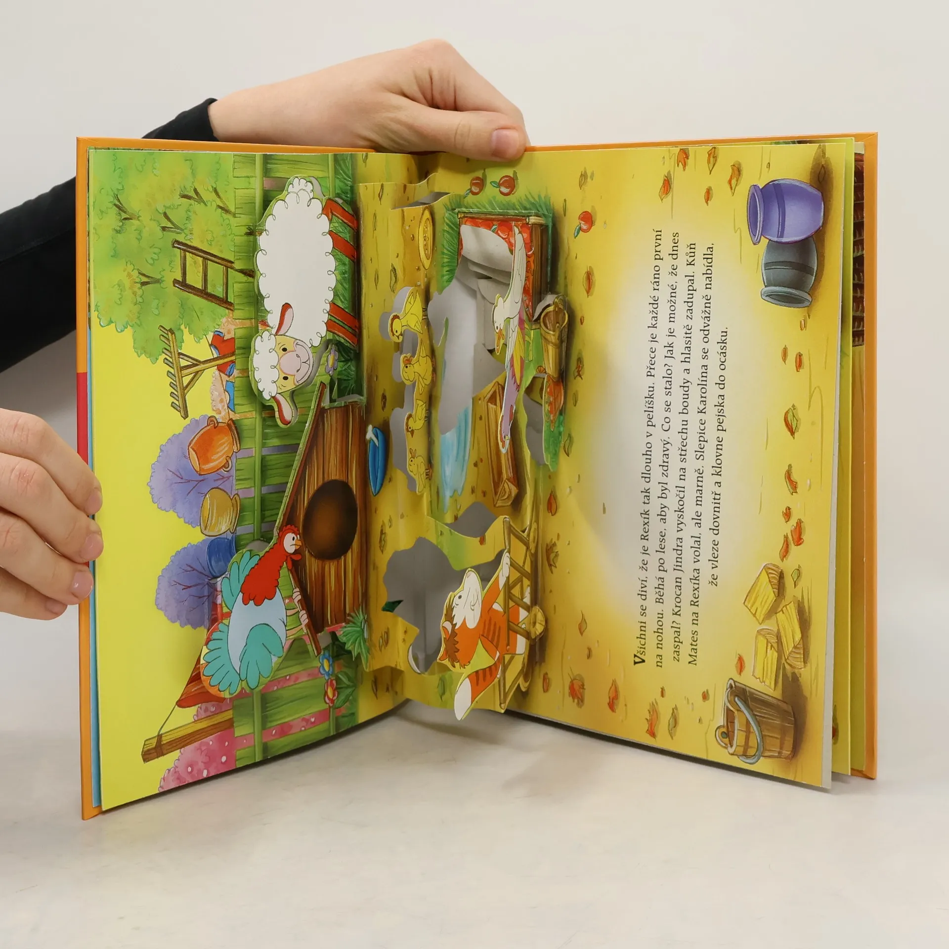 Bohatě ilustrované prostorové leporelo pro nejmenší děti vypráví příběh o tom, jak zvířátka na dvorku vybírala dárek pro prasátko k narozeninám.
