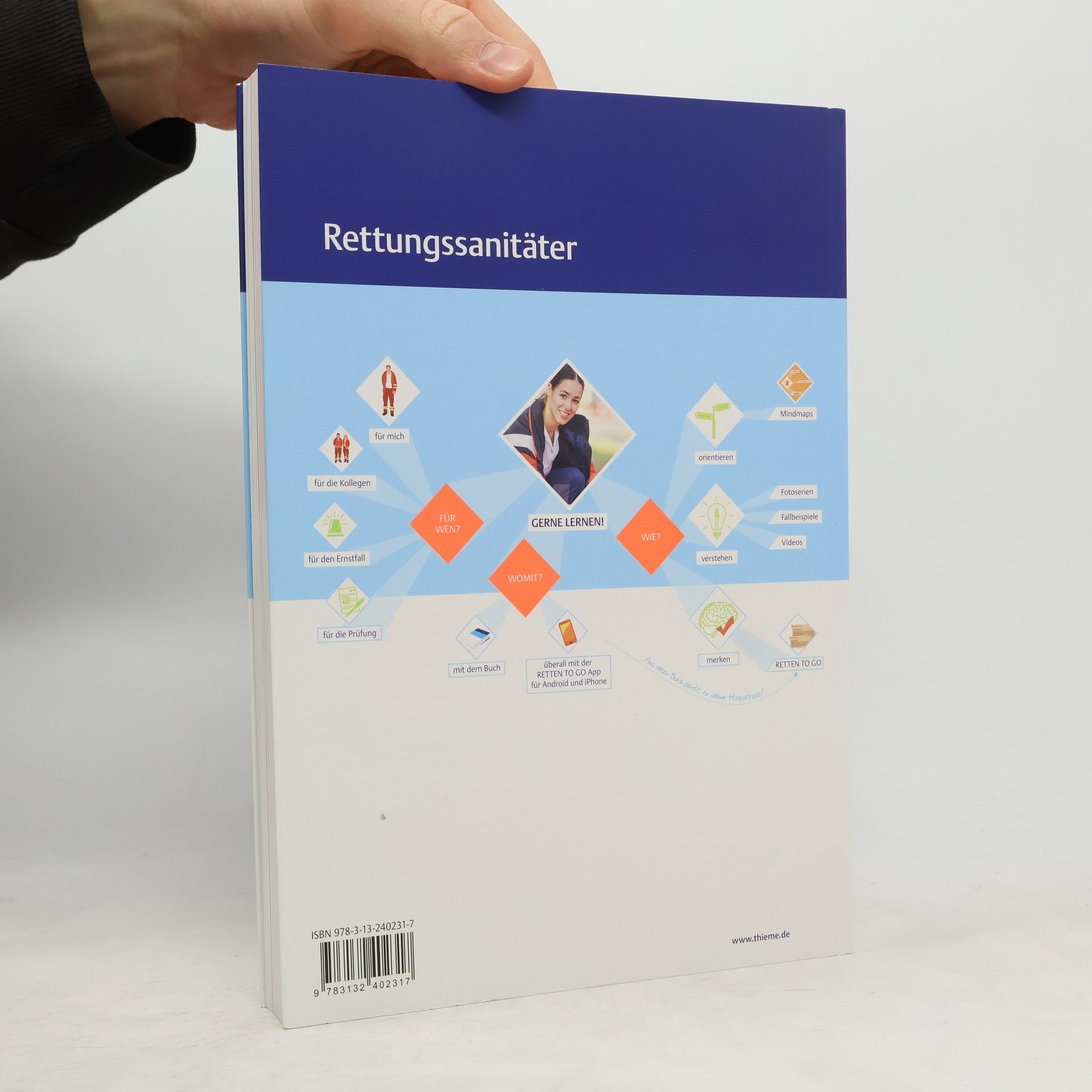Der starke Einstieg in die Welt des Rettungsdienstes - gut gewappnet für Prüfung und Einsatz! Alle medizinischen Grundlagen, die in der Ausbildung zum Rettungssanitäter und Rettungshelfer benötigt werden, liefert dieses Buch. Der ideale Einstieg in eine spannende Berufswelt mit Verantwortung. Mindmaps zum Kapitelstart helfen bei der raschen Orientierung im jeweiligen Thema. Praxisnahe Fotos, zahlreiche Grafiken und leicht erfassbare Lerntexte machen die Inhalte verständlich. Mit RETTEN TO GO Lernkästen können zentrale Fakten kurz vor der Prüfung rasch wiederholt werden. Später im Berufsalltag ist das Buch ein ideales Nachschlagewerk. Plus: - kostenlose RETTEN TO GO App: Die wichtigsten Fakten aus dem Buch auf dem Smartphone, immer mit dabei. Zusätzlich unterstützt der Online-Prüfungstrainer bei der Prüfungsvorbereitung. Jetzt kostenlos testen: rettenonline. thieme. de