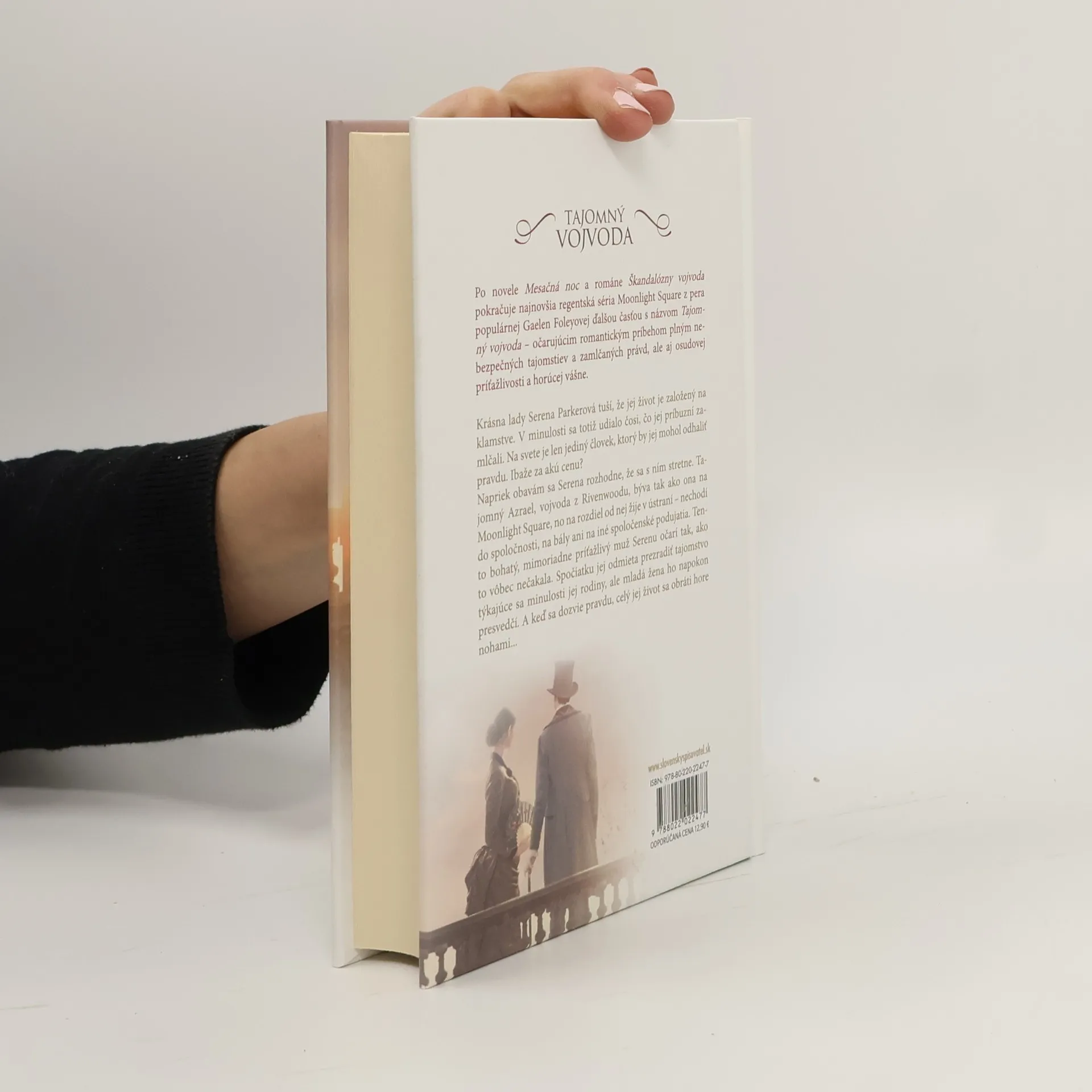 Po novele Mesačná noc a románe Škandalózny vojvoda pokračuje najnovšia regentská séria Moonlight Square z pera populárnej Gaelen Foleyovej ďalšou časťou s názvom Tajomný vojvoda – očarujúcim romantickým príbehom plným nebezpečných tajomstiev a zamlčaných právd, ale aj osudovej príťažlivosti a horúcej vášne. Krásna lady Serena Parkerová tuší, že jej život je založený na klamstve. V minulosti sa totiž udialo čosi, čo jej príbuzní zamlčali. Na svete je len jediný človek, ktorý by jej mohol odhaliť pravdu. Ibaže za akú cenu? Napriek obavám sa Serena rozhodne, že sa s ním stretne. Tajomný Azrael, vojvoda z Rivenwoodu, býva tak ako ona na Moonlight Square, no na rozdiel od nej žije v ústraní - nechodí do spoločnosti, na bály ani na iné spoločenské podujatia. Tento bohatý, mimoriadne príťažlivý muž Serenu očarí tak, ako to vôbec nečakala. Spočiatku jej odmieta prezradiť tajomstvo týkajúce sa minulosti jej rodiny, ale mladá žena ho napokon presvedčí. A keď sa dozvie pravdu, celý jej život sa obráti hore nohami...