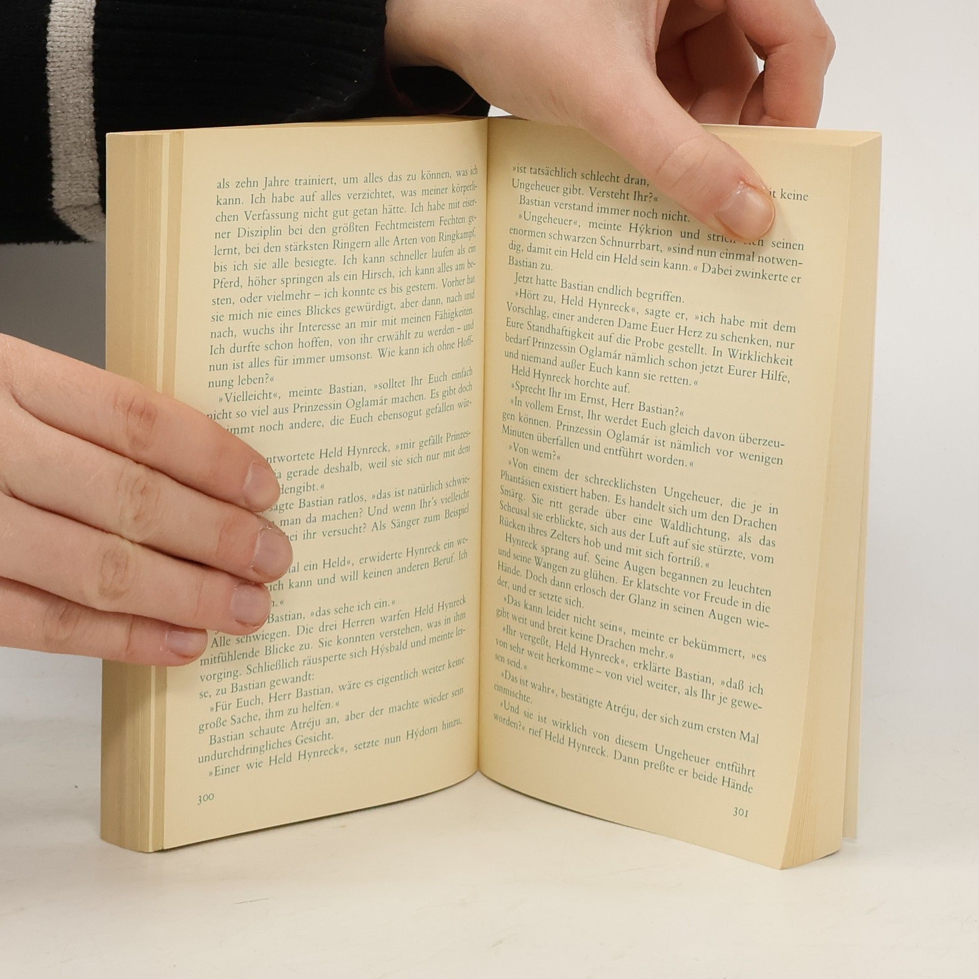 Der zehnjährige dickliche Bastian Balthasar Bux flüchtet sich vor den Nachstellungen der Schulkameraden in ein Antiquariat, wo ihn der Beginn eines Buches fasziniert, dessen Titel immer währendes Träumen verspricht. Bastian entwendet Die unendliche Geschichte und verliert sich auf dem Schulspeicher immer mehr in deren Lektüre: Die zunehmende Identifikation mit dem Helden Atréju ermöglicht ihm den Eintritt in die »Anderswelt«, in der er zum entscheidenden Protagonisten wird. Als Grenzgänger aus der Menschenwelt kommt ihm die Aufgabe zu, das vom »Nichts« bedrohte Phantásien und mit ihm dessen sterbenskranke »Kindliche Kaiserin« zu retten. Nach zahllosen Abenteuern auf dem Weg zu sich selbst, der von fantastischen Gestalten und mystischen Erkenntnissen gesäumt ist, löst Bastian mit Hilfe des »Wahren Willens« nicht nur seine Aufgabe, ihm gelingt auch die Rückkehr in die Realität, die er nun bewältigen kann.