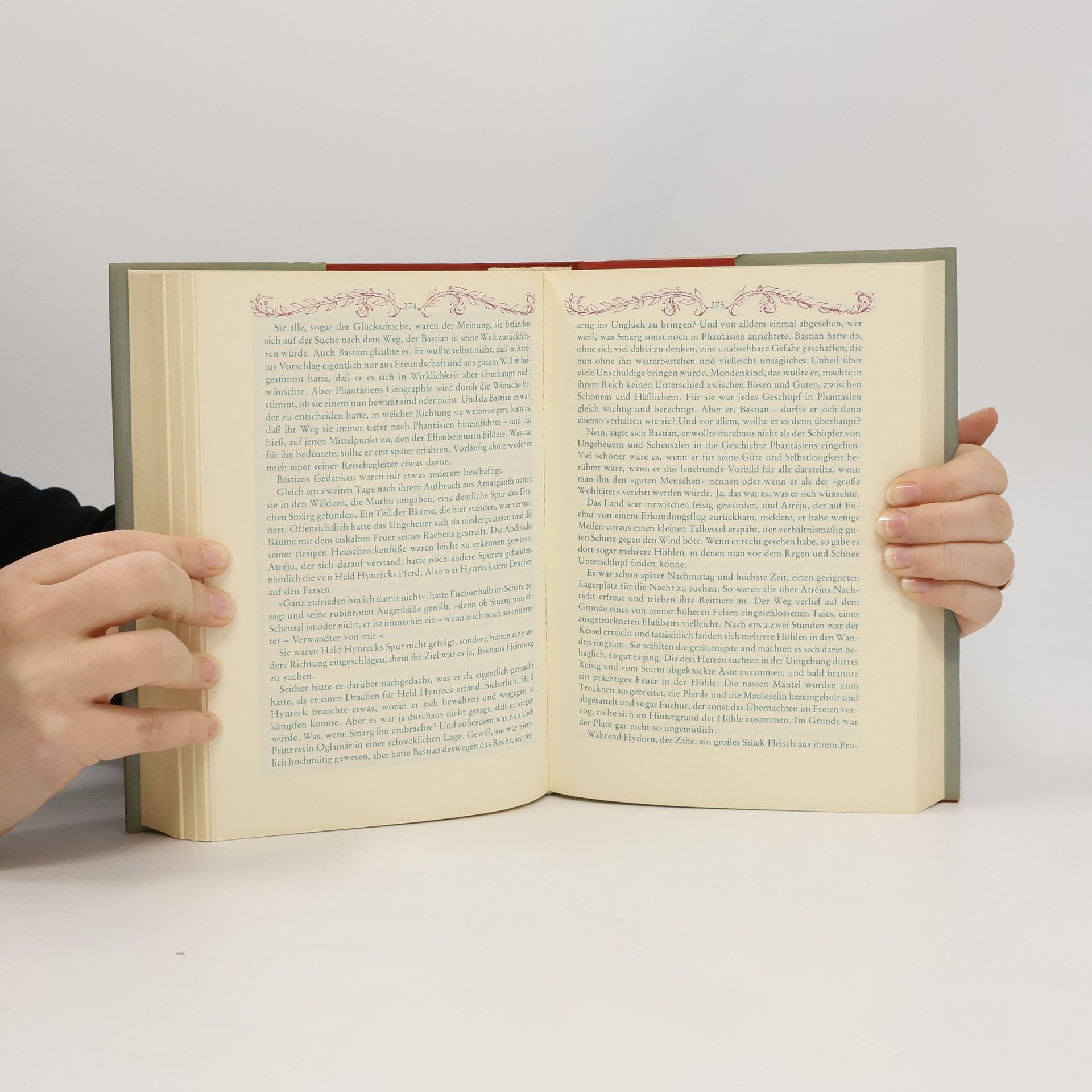 Der zehnjährige dickliche Bastian Balthasar Bux flüchtet sich vor den Nachstellungen der Schulkameraden in ein Antiquariat, wo ihn der Beginn eines Buches fasziniert, dessen Titel immer währendes Träumen verspricht. Bastian entwendet Die unendliche Geschichte und verliert sich auf dem Schulspeicher immer mehr in deren Lektüre: Die zunehmende Identifikation mit dem Helden Atréju ermöglicht ihm den Eintritt in die »Anderswelt«, in der er zum entscheidenden Protagonisten wird. Als Grenzgänger aus der Menschenwelt kommt ihm die Aufgabe zu, das vom »Nichts« bedrohte Phantásien und mit ihm dessen sterbenskranke »Kindliche Kaiserin« zu retten. Nach zahllosen Abenteuern auf dem Weg zu sich selbst, der von fantastischen Gestalten und mystischen Erkenntnissen gesäumt ist, löst Bastian mit Hilfe des »Wahren Willens« nicht nur seine Aufgabe, ihm gelingt auch die Rückkehr in die Realität, die er nun bewältigen kann.