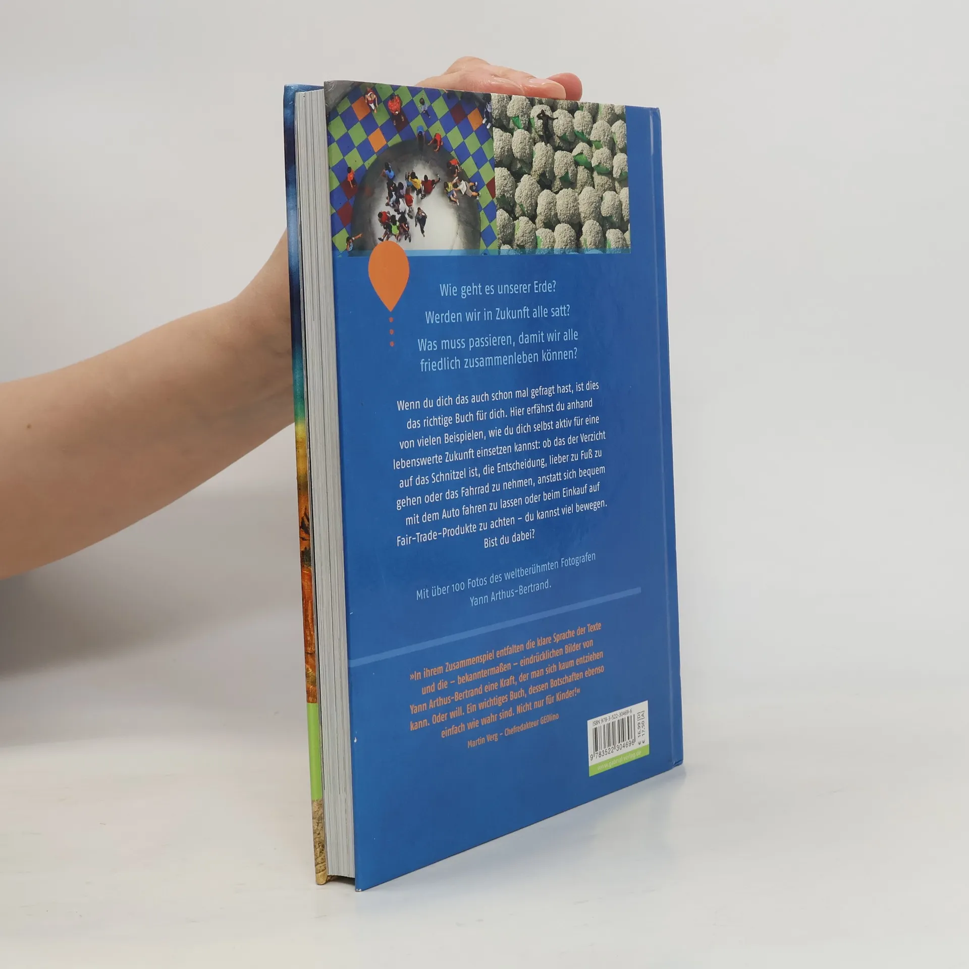 Hier erfährst du anhand von vielen Beispielen, wie du dich selbst aktiv für eine lebenswerte Zukunft einsetzen kannst: ob das der Verzicht auf das Schnitzel ist, die Entscheidung, lieber zu Fuß zu gehen oder das Fahrrad zu nehmen, anstatt sich bequem mit dem Auto fahren zu lassen oder beim Einkauf auf Fair-Trade-Produkte zu achten - du kannst viel bewegen. Bist du dabei? Mit über 100 Fotos des weltberühmten Fotografen Yann Arthus-Bertrand. „Ein wichtiges Buch, dessen Botschaften ebenso einfach wie wahr sind. Nicht nur für Kinder!" Martin Verg, Chefredakteur GEOlino