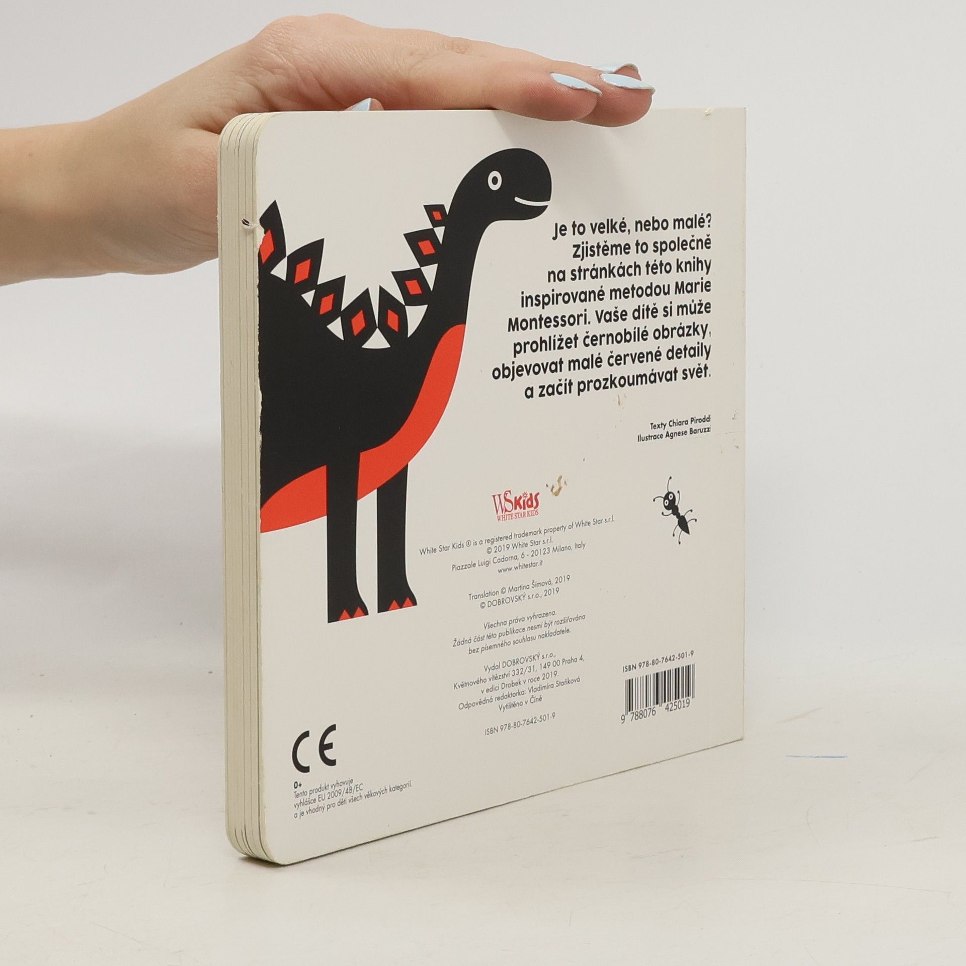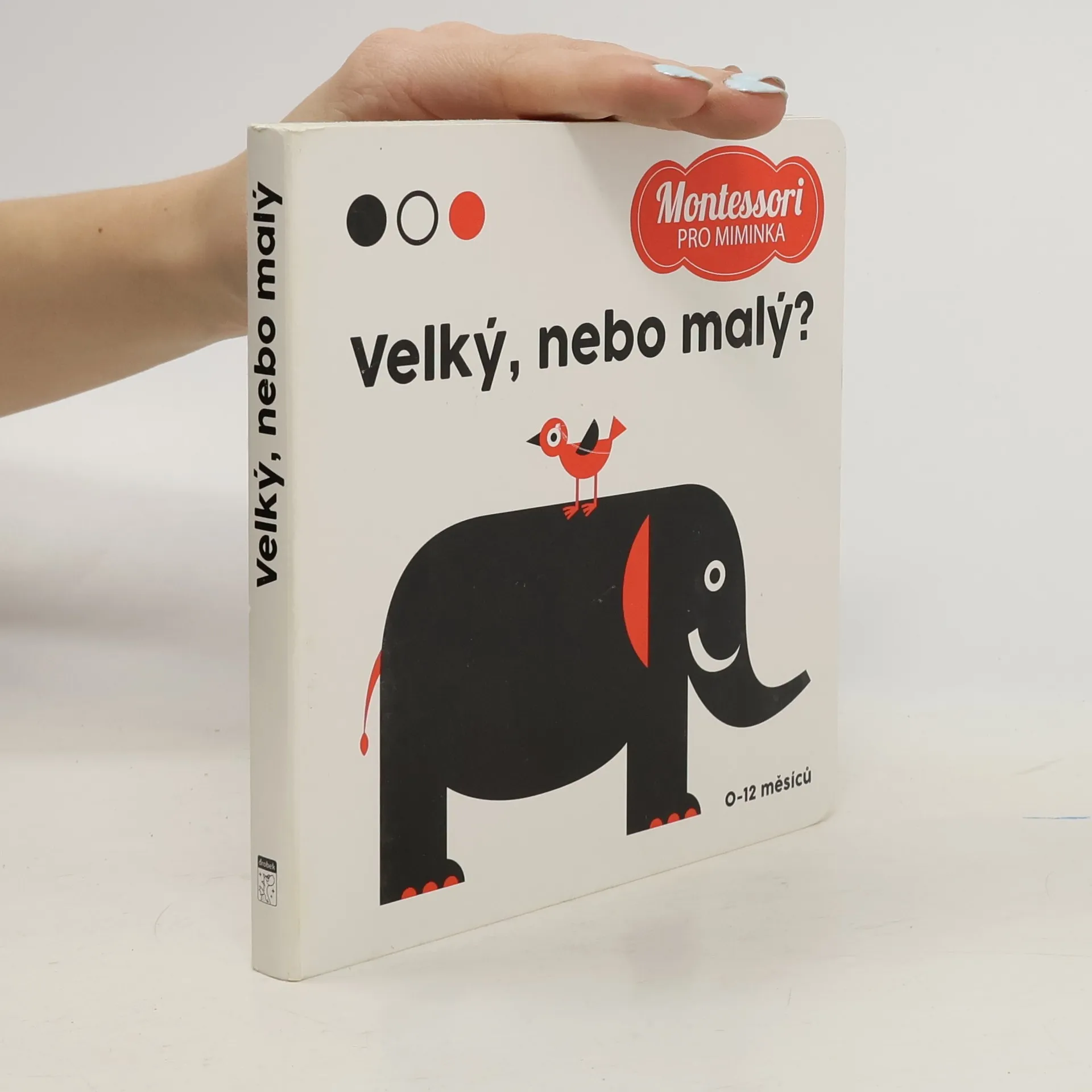 Je to velké, nebo malé? Zjistěme to společně na stránkách této knihy inspirované metodou Marie Montessori. Vaše dítě si může prohlížet černobílé obrázky, objevovat malé červené detaily a začít prozkoumávat svět.  Vhodné pro děti ve věku 0 až 12 měsíců.