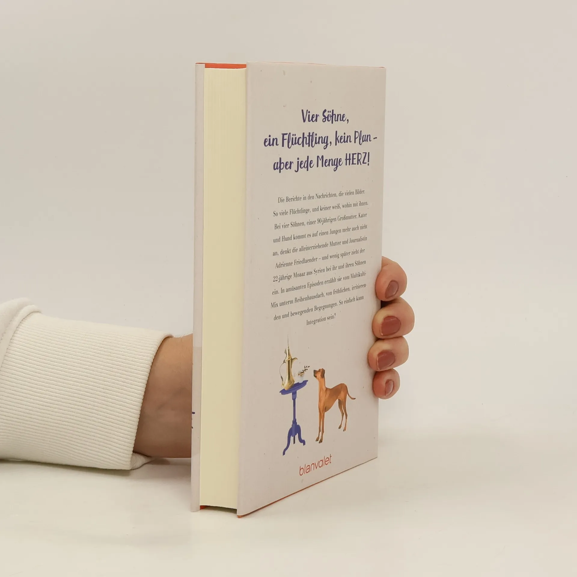 Vier Söhne, ein Flüchtling, kein Plan – aber jede Menge Herz! Die Berichte in den Nachrichten, die vielen Bilder. So viele Flüchtlinge, und keiner weiß, wohin mit ihnen. Bei vier Söhnen, einer 90-jährigen Großmutter, Kater und Hund kommt es auf einen Jungen mehr auch nicht an, denkt die alleinerziehende Mutter und Journalistin Adrienne Friedlaender – und wenig später zieht der 22-jährige Moaaz aus Syrien bei ihr und ihren Söhnen ein. In amüsanten Episoden erzählt sie vom Multikulti-Mix unterm Reihenhausdach, von fröhlichen, irritierenden und bewegenden Begegnungen. So einfach kann Integration sein?