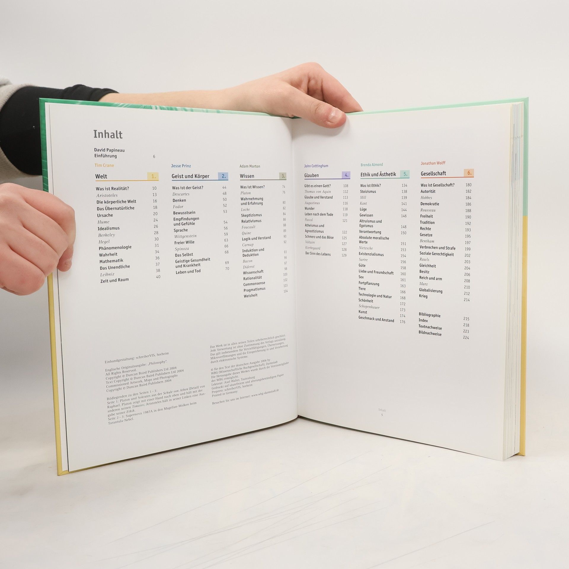 Was bedeutet es zu existieren? Was ist Wahrheit? Sind wir in unseren Entscheidungen frei? Warum sollen wir 'gut' sein? Kann man das Klonen von Menschen rechtfertigen? Das sind nur einige der Fragen, auf die die Philosophie versucht Antworten zu finden – Antworten letztendlich auf die Frage, was es bedeutet Mensch zu sein. Die Autoren gehen diesen Fragen nach und zeigen eindrücklich, dass Philosophie nicht trocken, lebensfern oder gar einschüchternd sein muss. Die originelle Darstellung beleuchtet die großen philosophischen Themen ('Welt', 'Geist und Körper', 'Wissen', 'Glauben', 'Ethik und Ästhetik' und 'Gesellschaft') mit Hilfe von Hintergrundwissen in Infokästen und stimmigen Illustrationen, die Sachverhalte verdeutlichen oder auch zum Weiterdenken animieren. In jedem Themenbereich werden dabei stets die Bezüge zu aktuellen Problemen und Diskussionen hergestellt. So ist ein anregendes Buch entstanden, das den Leser mitnimmt, auf eine Reise quer durch die westliche Philosophie und gleichzeitig Blickwinkel eröffnet, auf die Dinge, die im Leben wirklich zählen. Zum Herausgeber David Papineau ist Professor für Philosophie am King’s College der Universität London.