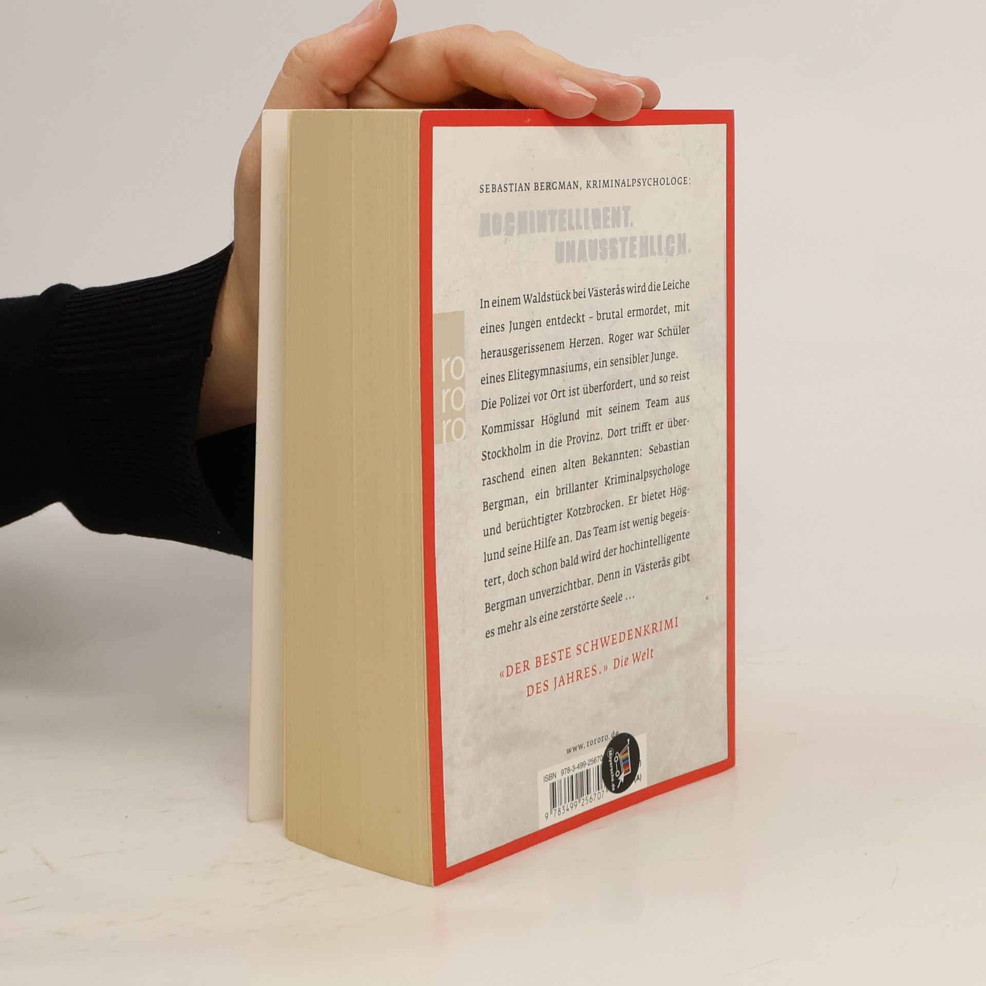 Sebastian Bergman, Kriminalpsychologe: Hochintelligent. Unausstehlich. In einem Waldstück bei Västerås wird die Leiche eines Jungen entdeckt – brutal ermordet, mit herausgerissenem Herzen. Roger war Schüler eines Elitegymnasiums, ein sensibler Junge. Die Polizei vor Ort ist überfordert, und so reist Kommissar Höglund mit seinem Team aus Stockholm in die Provinz. Dort trifft er überraschend einen alten Bekannten: Sebastian Bergman, ein brillanter Kriminalpsychologe und berüchtigter Kotzbrocken. Er bietet Höglund seine Hilfe an. Das Team ist wenig begeistert, doch schon bald wird der hochintelligente Bergman unverzichtbar. Denn in Västerås gibt es mehr als eine zerstörte Seele ... Sebastian Bergmans erster Fall