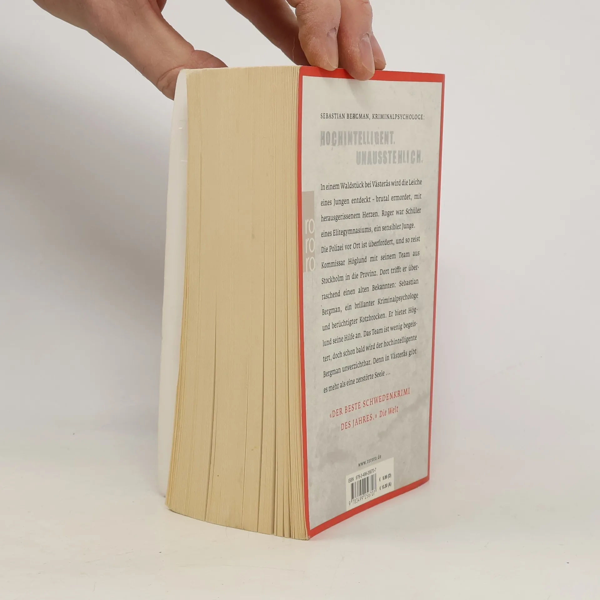 Sebastian Bergman, Kriminalpsychologe: Hochintelligent. Unausstehlich. In einem Waldstück bei Västerås wird die Leiche eines Jungen entdeckt – brutal ermordet, mit herausgerissenem Herzen. Roger war Schüler eines Elitegymnasiums, ein sensibler Junge. Die Polizei vor Ort ist überfordert, und so reist Kommissar Höglund mit seinem Team aus Stockholm in die Provinz. Dort trifft er überraschend einen alten Bekannten: Sebastian Bergman, ein brillanter Kriminalpsychologe und berüchtigter Kotzbrocken. Er bietet Höglund seine Hilfe an. Das Team ist wenig begeistert, doch schon bald wird der hochintelligente Bergman unverzichtbar. Denn in Västerås gibt es mehr als eine zerstörte Seele ... Sebastian Bergmans erster Fall