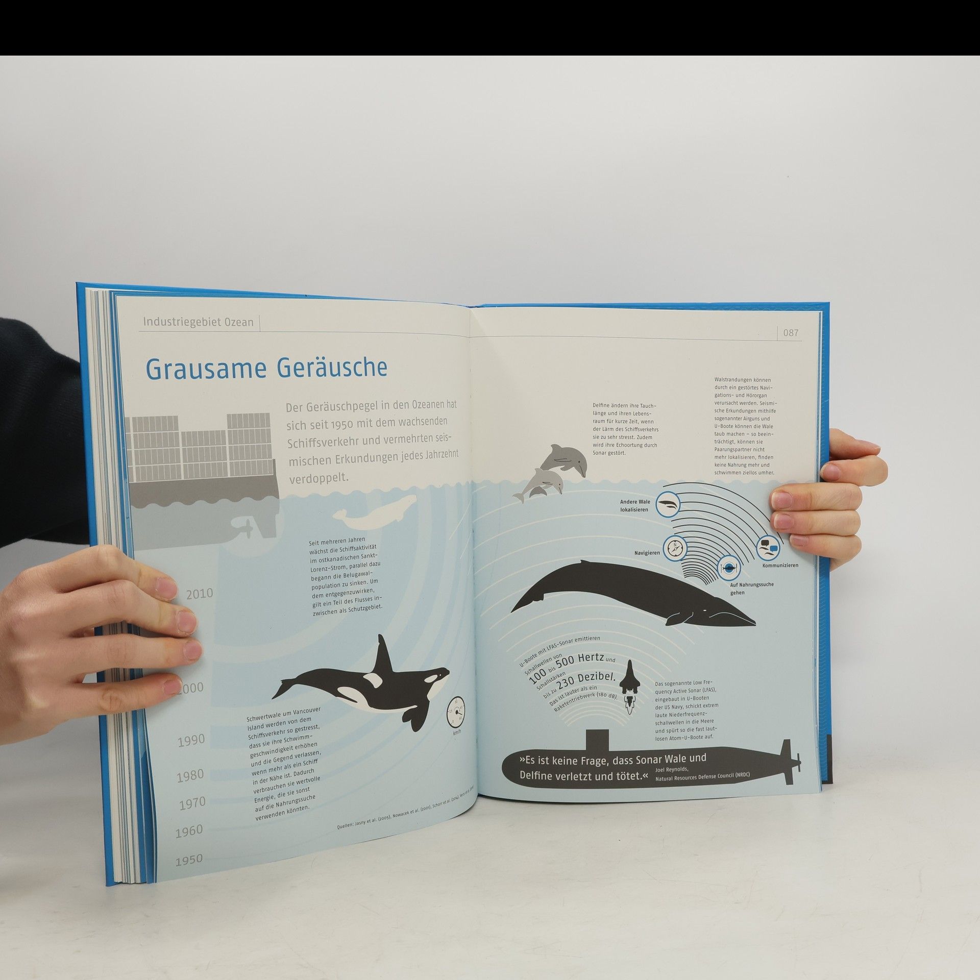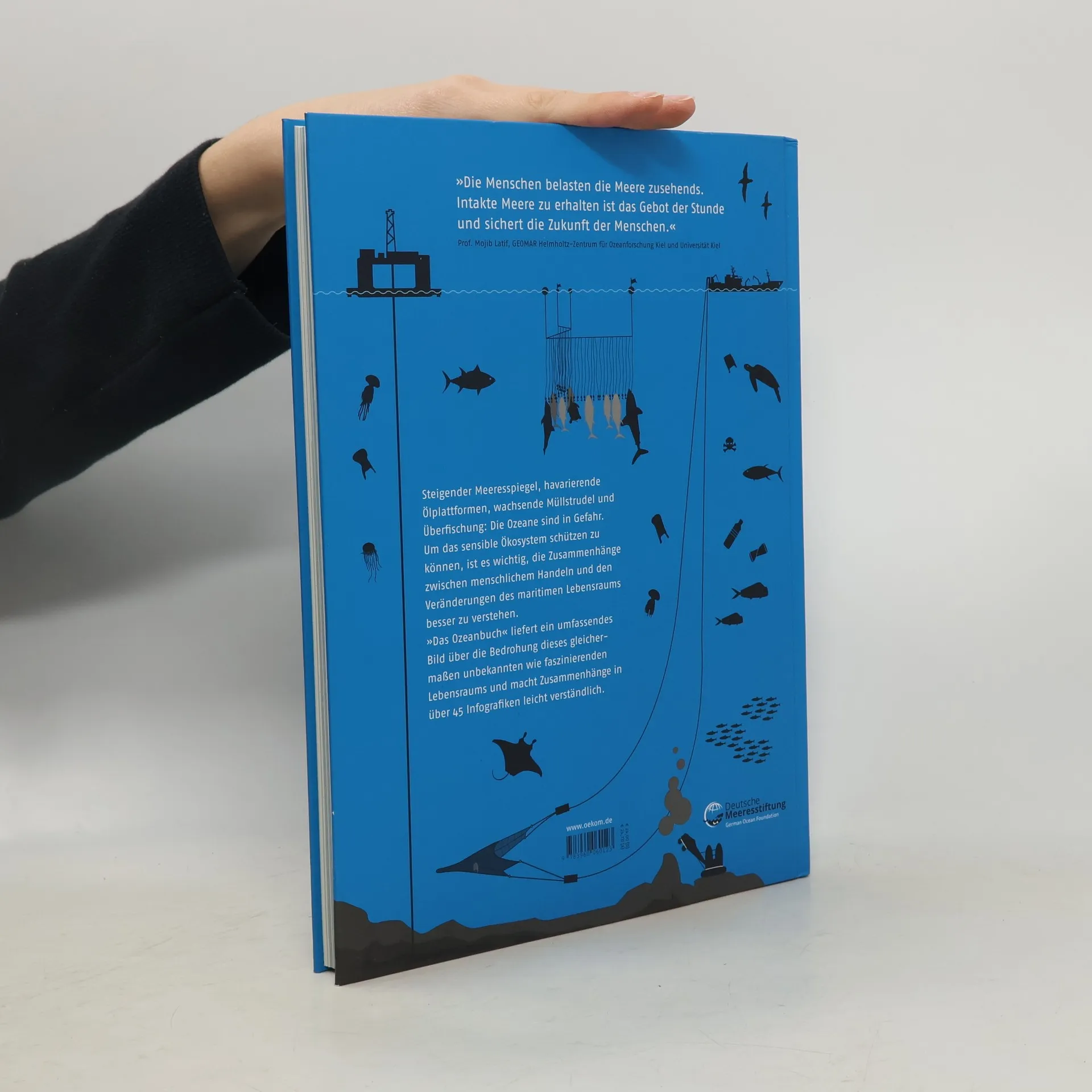 Steigender Meeresspiegel, havarierende Ölplattformen, wachsende Müllstrudel und Überfischung: Die Ozeane sind in Gefahr. Um das sensible Ökosystem schützen zu können, ist es wichtig, die Zusammenhänge zwischen menschlichem Handeln und den Veränderungen des maritimen Lebensraums besser zu verstehen. »Das Ozeanbuch« liefert ein umfassendes Bild über die Bedrohung dieses gleichermaßen unbekannten wie faszinierenden Lebensraums und macht Zusammenhänge in über 45 Infografiken leicht verständlich.