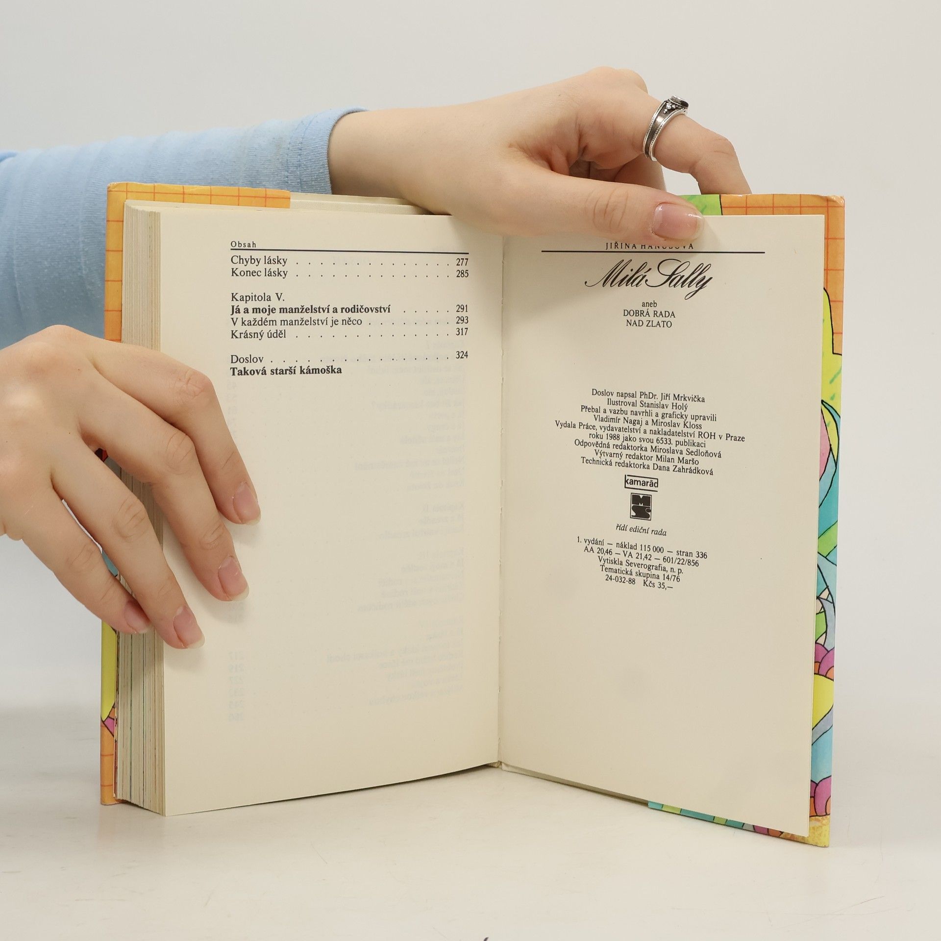 Jiřina Hanušová se svým pseudonymem 'Sally', je psycholožka zabývající se lidskými vztahy. Knížka obsahuje otázky a trápení čtenářů časopisu Mladý Svět. Přes velikou úspěšnost proto byla vydána i knížka, která obsahuje dopisy týkající se vzhledu, kamarádství, dospívání, sexu,manželství, vztahy v rodině i okolí... Neměla by chybět v knihovničce alespoň z nostalgie.
