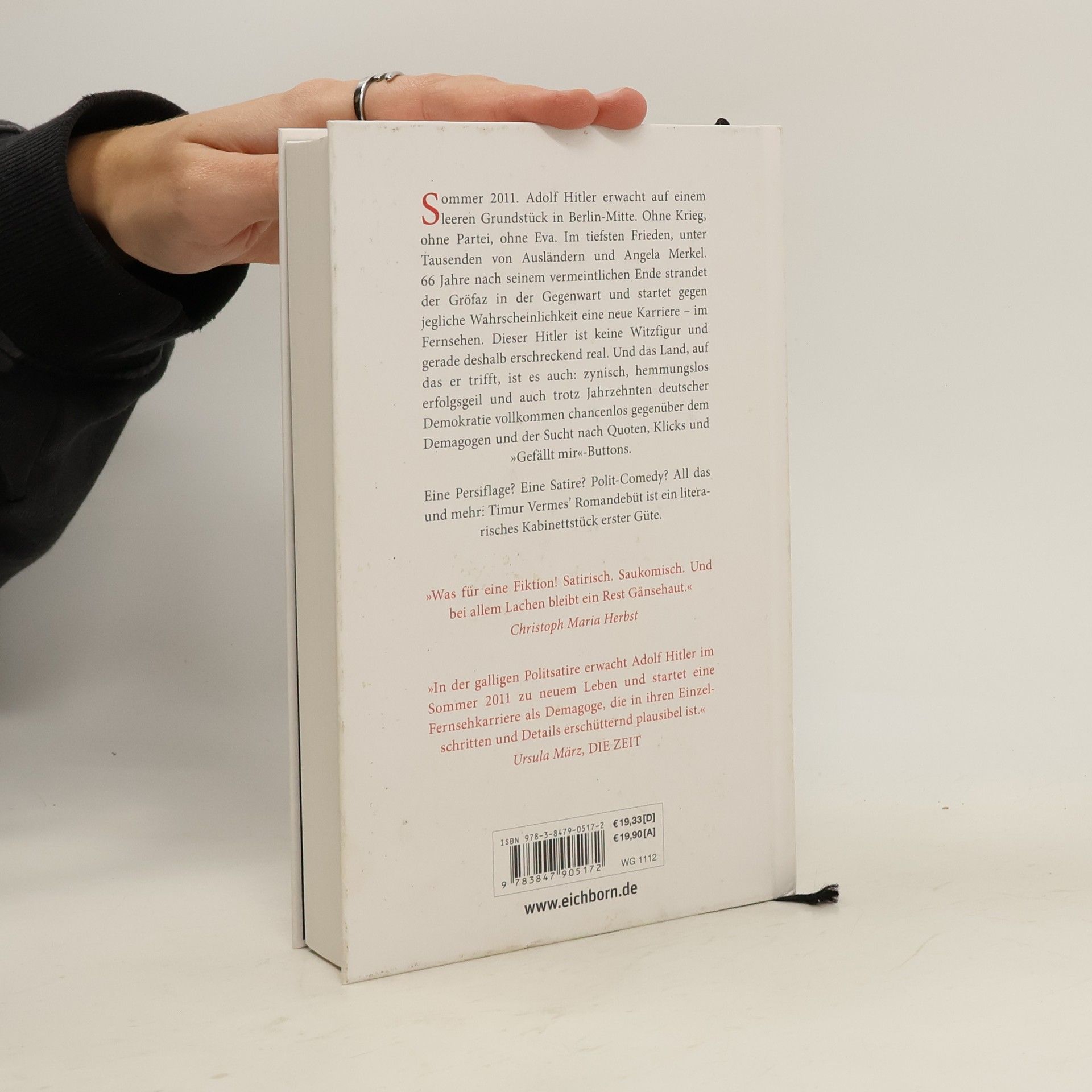 Sommer 2011. Adolf Hitler erwacht auf einem leeren Grundstück in Berlin-Mitte. Ohne Krieg, ohne Partei, ohne Eva. Im tiefsten Frieden, unter Tausenden von Ausländern und Angela Merkel. 66 Jahre nach seinem vermeintlichen Ende strandet der Gröfaz in der Gegenwart und startet gegen jegliche Wahrscheinlichkeit eine neue Karriere - im Fernsehen. Dieser Hitler ist keine Witzfigur und gerade deshalb erschreckend real. Und das Land, auf das er trifft, ist es auch: zynisch, hemmungslos erfolgsgeil und auch trotz Jahrzehnten deutscher Demokratie vollkommen chancenlos gegenüber dem Demagogen und der Sucht nach Quoten, Klicks und „Gefällt mir“-Buttons. Eine Persiflage? Eine Satire? Polit-Comedy? All das und mehr: Timur Vermes' Romandebüt ist ein literarisches Kabinettstück erster Güte.