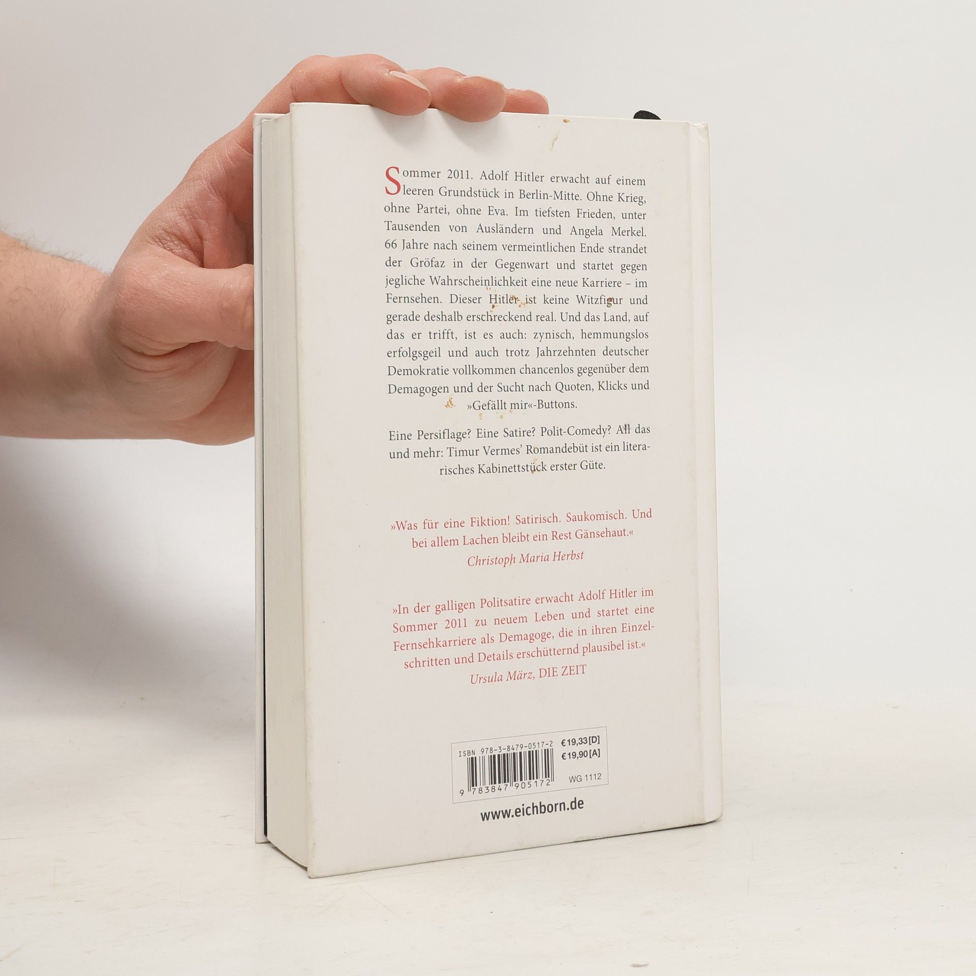 Sommer 2011. Adolf Hitler erwacht auf einem leeren Grundstück in Berlin-Mitte. Ohne Krieg, ohne Partei, ohne Eva. Im tiefsten Frieden, unter Tausenden von Ausländern und Angela Merkel. 66 Jahre nach seinem vermeintlichen Ende strandet der Gröfaz in der Gegenwart und startet gegen jegliche Wahrscheinlichkeit eine neue Karriere - im Fernsehen. Dieser Hitler ist keine Witzfigur und gerade deshalb erschreckend real. Und das Land, auf das er trifft, ist es auch: zynisch, hemmungslos erfolgsgeil und auch trotz Jahrzehnten deutscher Demokratie vollkommen chancenlos gegenüber dem Demagogen und der Sucht nach Quoten, Klicks und „Gefällt mir“-Buttons. Eine Persiflage? Eine Satire? Polit-Comedy? All das und mehr: Timur Vermes' Romandebüt ist ein literarisches Kabinettstück erster Güte.