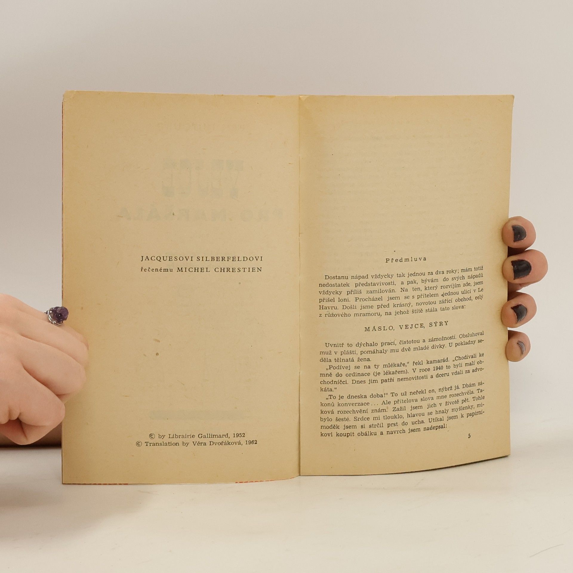 aneb Deset let ze života jednoho mlékaře. Odstrašujícími hrdiny románu francouzského spisovatele (nar. 1920) jsou pařížský mlékař Poissonard se svou manželkou, kteří využívají válečného nedostatku, nestydatě šmelí, kolaborují a okrádáním druhých hromadí jmění, v posledních dnechválky v sobě pohotově objeví "vlastence" a klidně pokračují ve své odporné kariéře, neboť společenské poměry v poválečné Francii to nejen dovolují, ale přímo k tomu vybízejí.