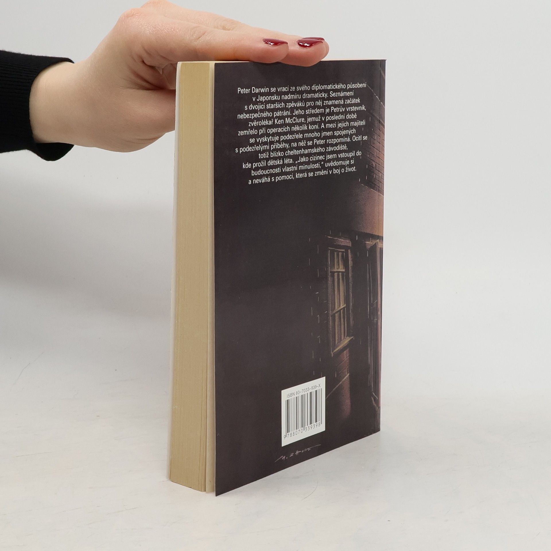 „Jako cizinec jsem vstoupil do budoucnosti vlastní minulosti,“ říká Peter Darwin, hrdina nového románu Dicka Francise, a ta poněkud tajuplná věta výstižně charakterizuje velkou změnu, kterou prožívá. Při návratu ze svého diplomatického působení v Japonsku se seznámí s dvojicí starších zpěváků a zaplete se tak nejen do loupežného přepadení, ale i do nebezpečného pátrání. V jeho středu je Petrův vrstevník Ken McClure, zvěrolékař a vynikající chirurg, jemuž však v poslední době při operacích zemřelo několik koní. A mezi jejich majiteli se vyskytuje podezřele mnoho jmen spojených s velice podezželými příběhy, na něž se Peter Darwin rozpomíná. Ocitl se totiž blízko cheltenhamského závodiště, kde strávil dětská léta. Pro další kariéru Kena McClura je to jistě velké štěstí…