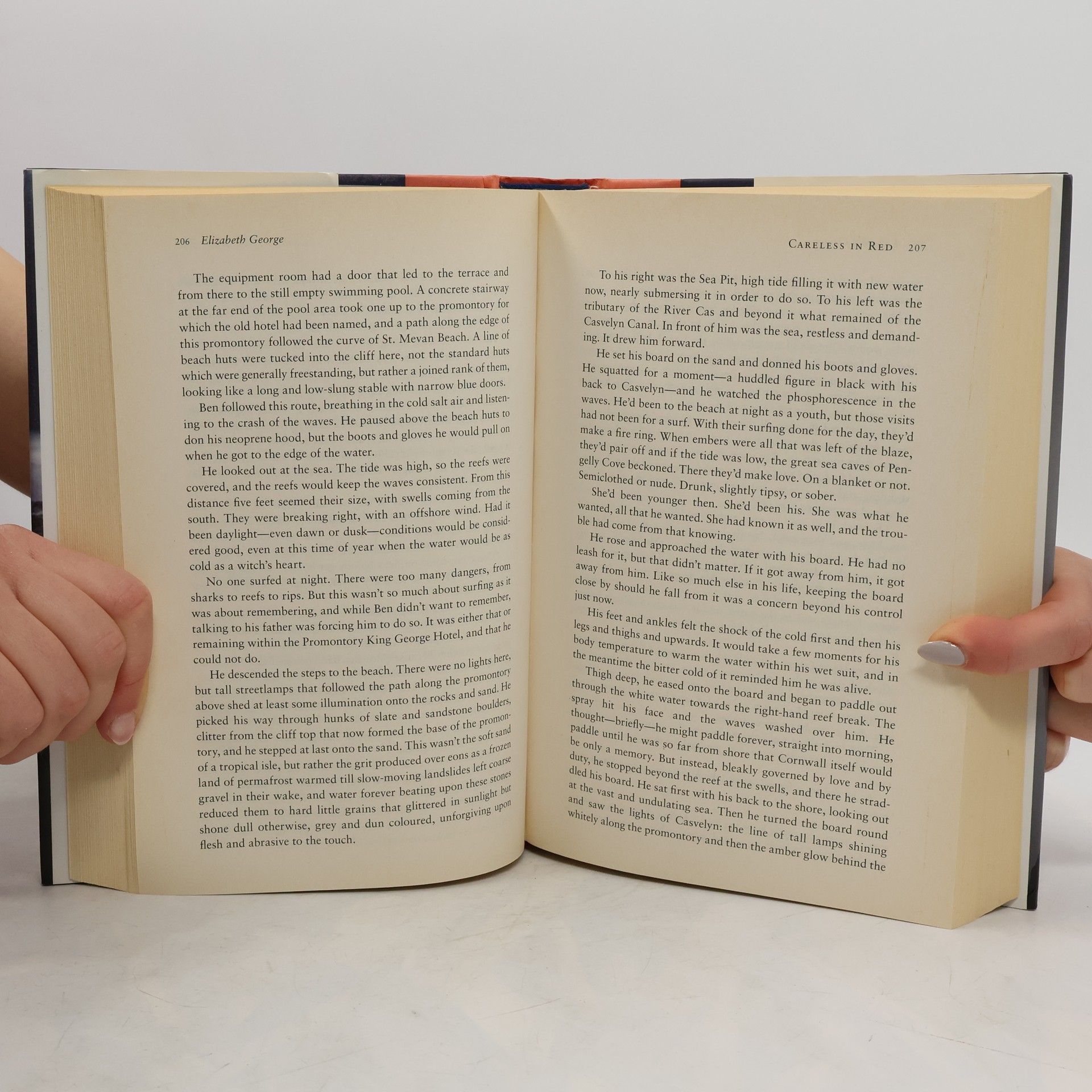 In her most eagerly anticipated novel yet, Elizabeth George brings back Scotland Yard's Thomas Lynley to investigate a ruthless crime. After the senseless murder of his wife, Detective Superintendent Thomas Lynley retreated to Cornwall, where he has spent six solitary weeks hiking the bleak and rugged coastline. But no matter how far he walks, no matter how exhausting his days, the painful memories of Helen's death do not diminish. On the forty-third day of his walk, at the base of a cliff, Lynley discovers the body of a young man who appears to have fallen to his death. The closest town, better known for its tourists and its surfing than its intrigue, seems an unlikely place for murder. However, it soon becomes apparent that a clever killer is indeed at work, and this time Lynley is not a detective but a witness and possibly a suspect. The head of the vastly understaffed local police department needs Lynley's help, though, especially when it comes to the mysterious, secretive woman whose cottage lies not far from where the body was discovered. But can Lynley let go of the past long enough to solve a most devious and carefully planned crime?