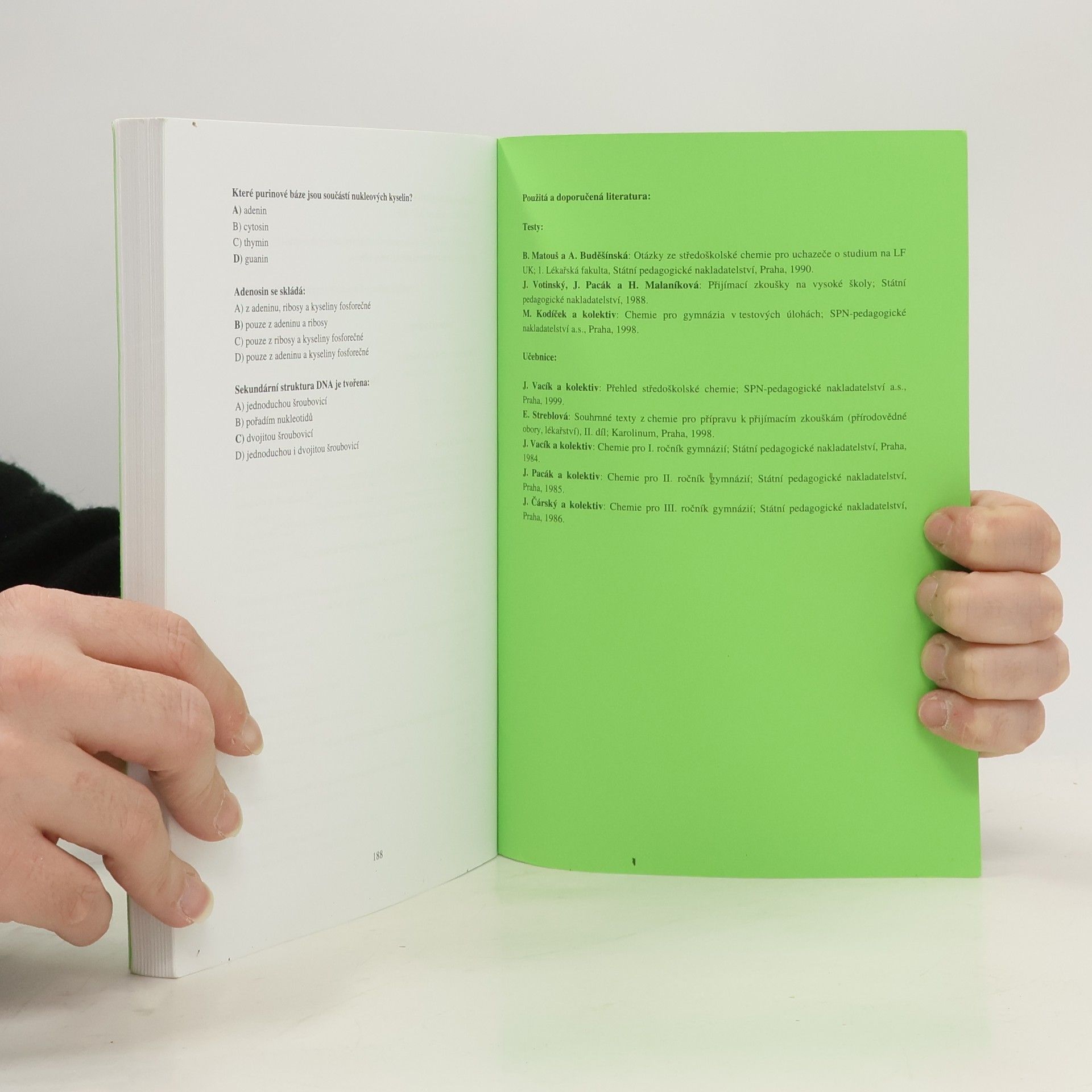 Soubor testových otázek z chemie, 7. vydání. Toto vydánívychází z předchozího, 6. upraveného vydání z roku 2014.Otázky budou zařazeny do přijímacího testu jak v nezměněném znění, tak mohou být i různě modifikoványpři zachování jejich obtížnosti.