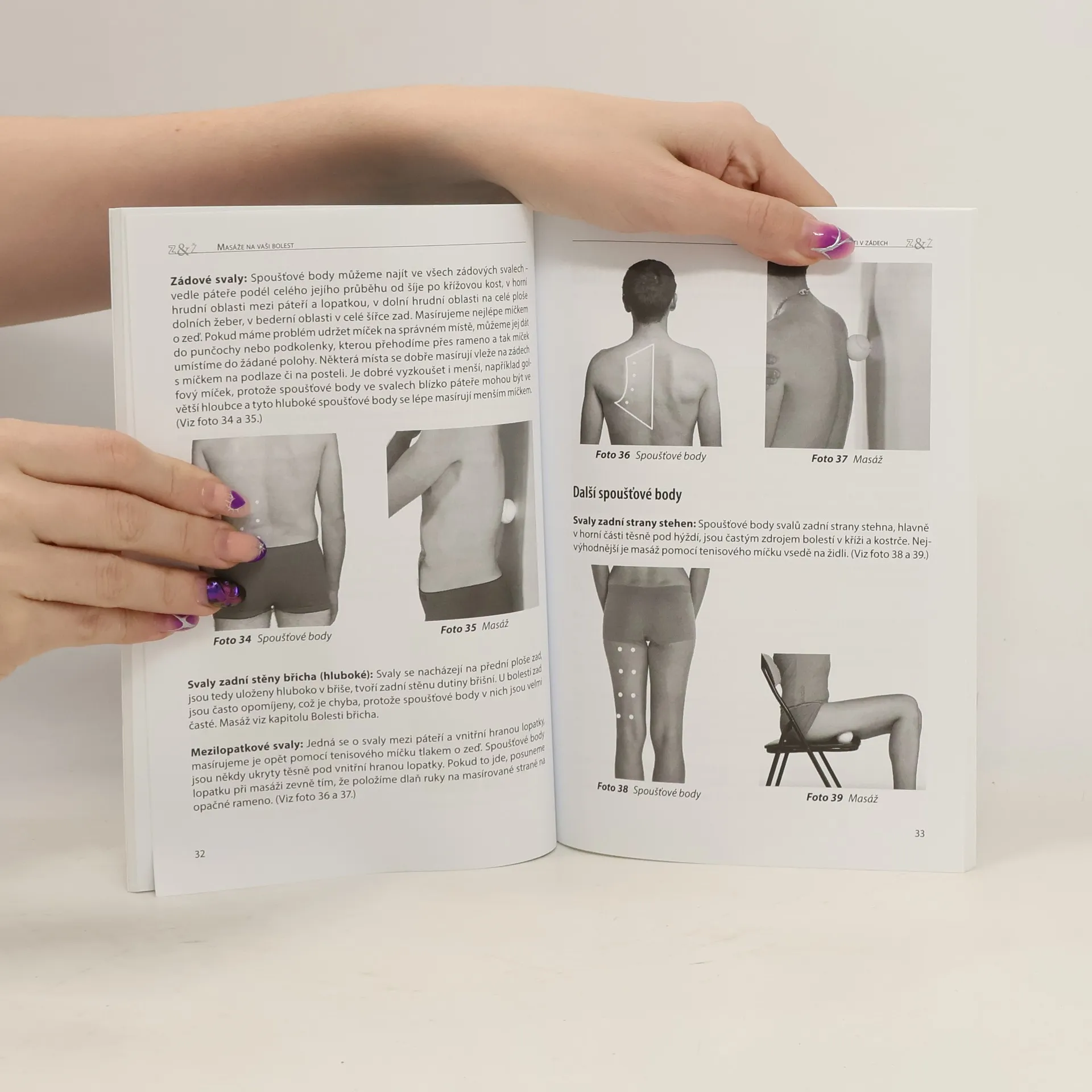 Již po staletí je znám princip spoušťových bodů a způsoby jejich ošetření. Bohužel je jen málo využíván v lékařských oborech zabývajících se pohybovým systémem, a proto tak často dochází ke zbytečnému užívání léků a k operacím. Právě proto byla napsána tato kniha, která se zaměřuje na odstranění bolestí celého těla na principu tzv. přenesené bolesti, kdy se příčina bolestí nachází na jiném místě než bolest sama. Nyní si již sami budete moci rychle ulevit od většiny bolestí kloubů, svalů, zad, hlavy apod. pomocí spolehlivé a ověřené metody - tlakové masáže. Lehce zvládnete léčení svého těla při akutních i chronických bolestech. A navíc dříve, než uplyne objednací doba k lékaři.