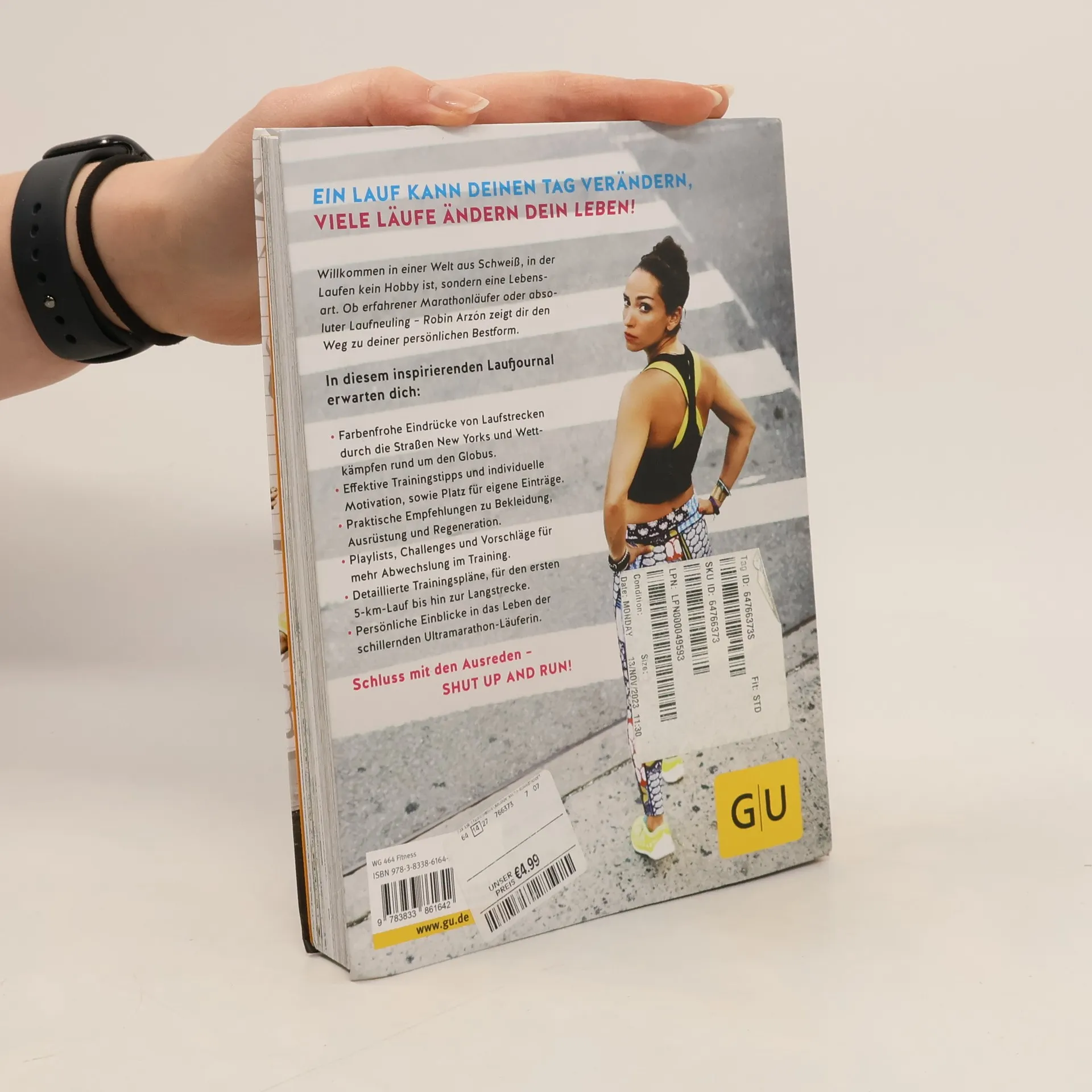 » Get Off Your Ass & Go For A Run! « – Robin Arzón Egal ob asphaltierter Großstadtdschungel oder ausgetretene Pfade in wilder Natur: Dieses Buch treibt jeden nach draußen! Ausgestattet mit allem, was Einsteiger und erfahrene Läufer wissen müssen, ist es Ratgeber, Trainingsprogramm und inspirierendes Laufjournal zugleich. Das Rundumpaket enthält nicht nur Wochenpläne, praktische Tipps zu Ausrüstung und Zielsetzung, sondern auch animierende Playlists, Wissenswertes zu Wettkämpfen, Regenerationsphasen und vieles mehr. Nebenbei beschreibt die Autorin ihren Weg von der New Yorker Prozessanwältin hin zur Ultramarathon-Läuferin. Laufen ist für sie nicht nur Sport, sondern ein bunter, fabelhafter Lifestyle. Höchst motivierend und inspirierend pusht sie ihre Leser zu Bestleistungen, denn: Ein Lauf kann deinen Tag verändern, viele Läufe ändern dein Leben !