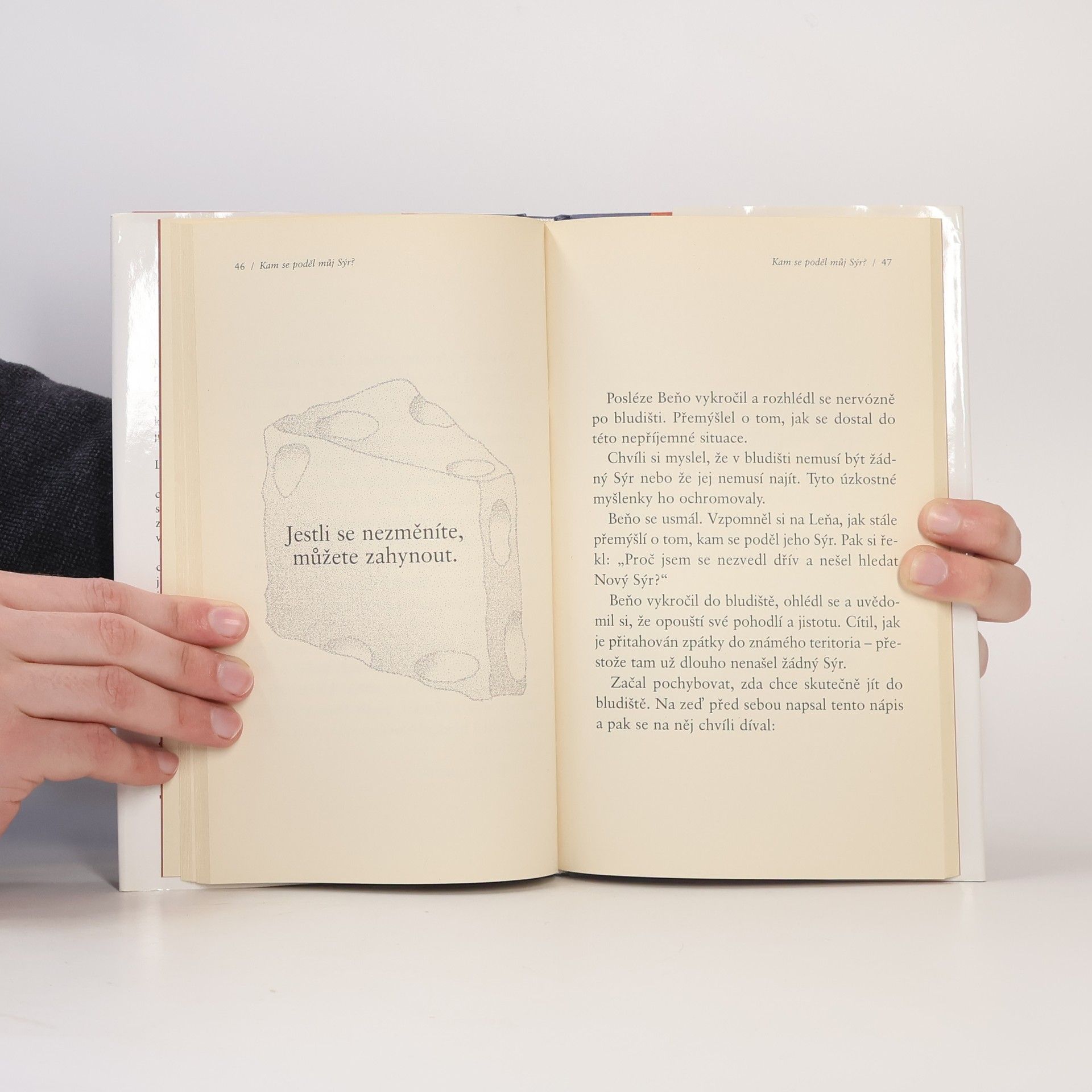 Jedná se o podobenství, které odhaluje hluboké pravdy o změně. Je to zábavný a poučný příběh o čtyřech zajímavých postavičkách, které žijí v „Bludišti“, kde hledají „Sýr“. Sýr je metaforou toho, co v životě chceme, ať už je to zaměstnání, partnerský vztah, peníze, dům, svoboda, dobré zdraví, společenské uznání nebo duševní vyrovnanost. Bludiště je místo, kde hledáme to, co chceme.