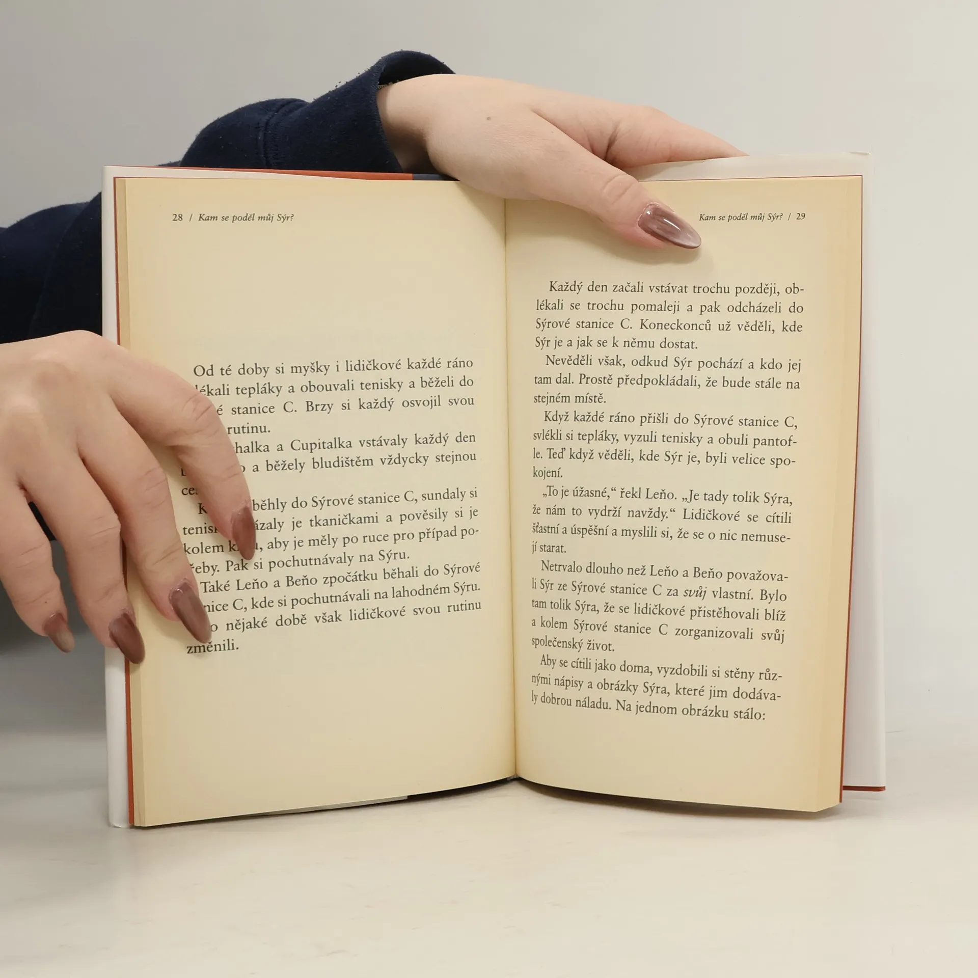 Jedná se o podobenství, které odhaluje hluboké pravdy o změně. Je to zábavný a poučný příběh o čtyřech zajímavých postavičkách, které žijí v „Bludišti“, kde hledají „Sýr“. Sýr je metaforou toho, co v životě chceme, ať už je to zaměstnání, partnerský vztah, peníze, dům, svoboda, dobré zdraví, společenské uznání nebo duševní vyrovnanost. Bludiště je místo, kde hledáme to, co chceme.
