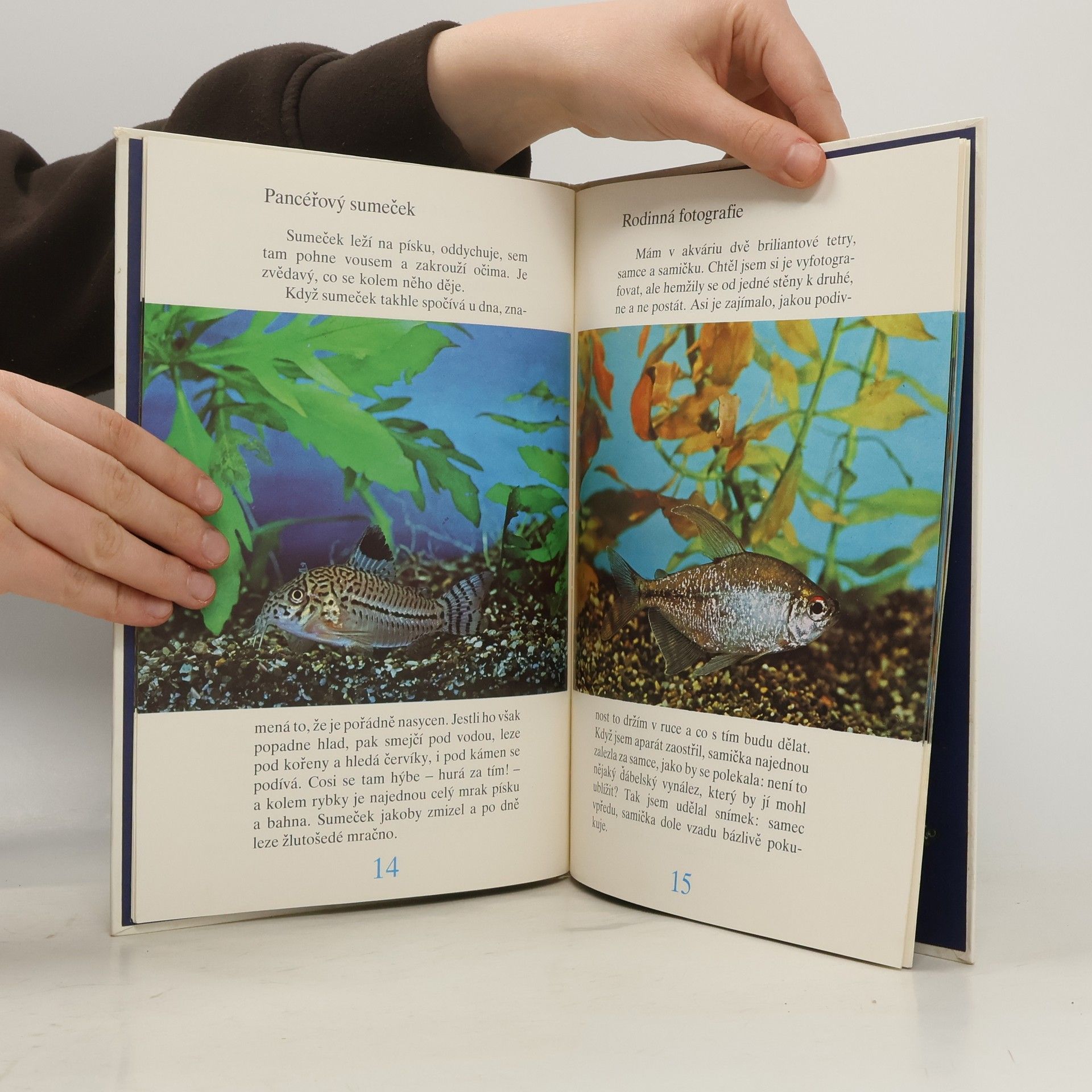 Barevné fotografie akvarijních rybek, doplněny údaji o jejich životě.