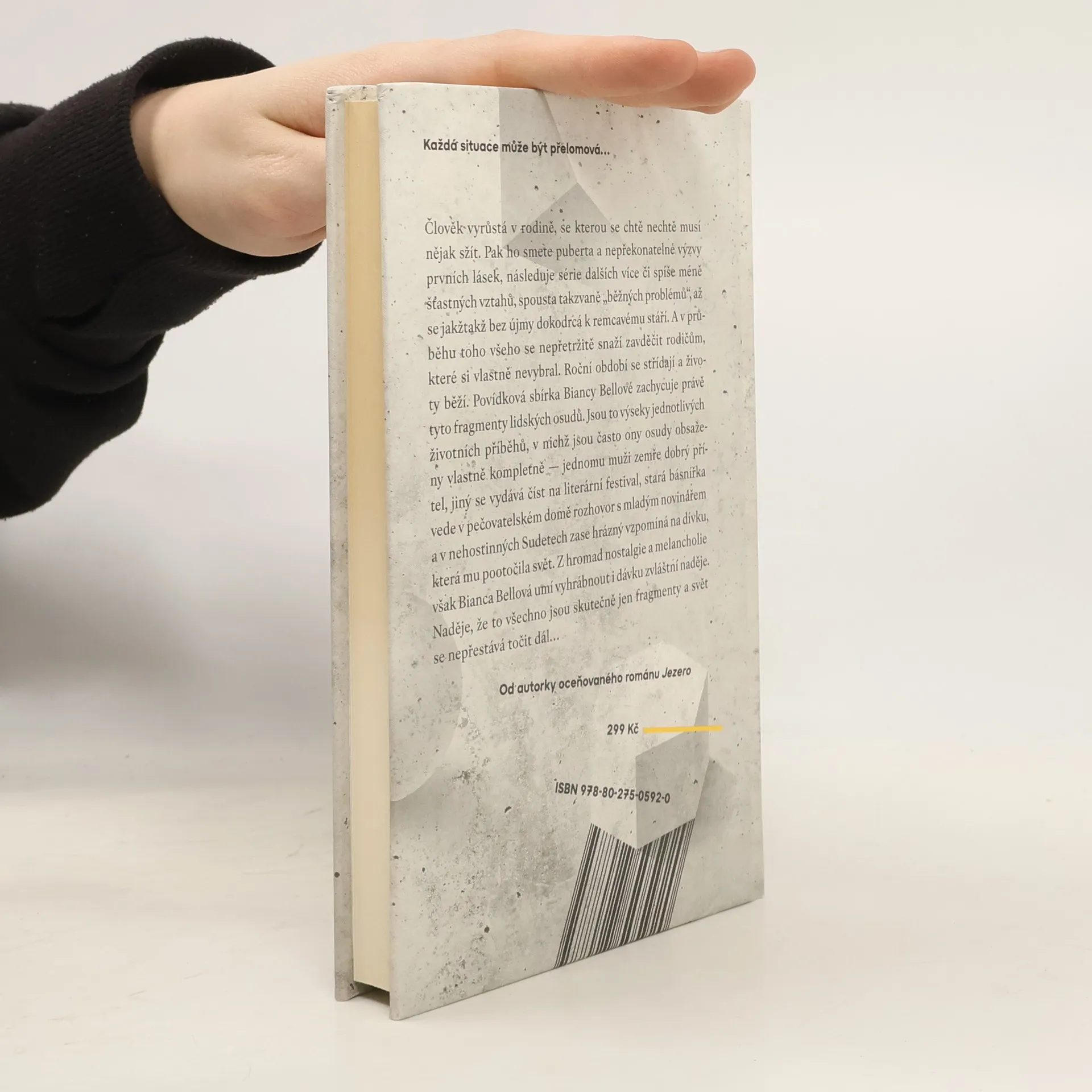 Každá situace může být přelomová… Člověk vyrůstá v rodině, se kterou se chtě nechtě musí nějak sžít. Pak ho smete puberta a nepřekonatelné výzvy prvních lásek, následuje série dalších více či spíše méně šťastných vztahů, spousta takzvaně „běžných problémů“, až se jakžtakž bez újmy dokodrcá k remcavému stáří. A v průběhu toho všeho se nepřetržitě snaží zavděčit rodičům, které si vlastně nevybral. Roční období se střídají a životy běží. Povídková sbírka Biancy Bellové zachycuje právě tyto fragmenty lidských osudů. Jsou to výseky jednotlivých životních příběhů, v nichž jsou často ony osudy obsaženy vlastně kompletně — dívka na koupališti zažije přelomovou situaci, podobně zásadní je pro jinou ženu setkání dohodnuté přes Tinder, jednomu muži zase zemře dobrý přítel, jiný se vydává číst na literární festival, stará básnířka vede v pečovatelském domě rozhovor s mladým novinářem a v nehostinných Sudetech zase jeden hrázný vzpomíná na dívku, která mu pootočila svět. Z hromad nostalgie a melancholie však Bianca Bellová umí vyhrábnout i dávku zvláštní naděje. Naděje, že to jsou všechno vážně jen fragmenty a svět se nepřestává točit dál…