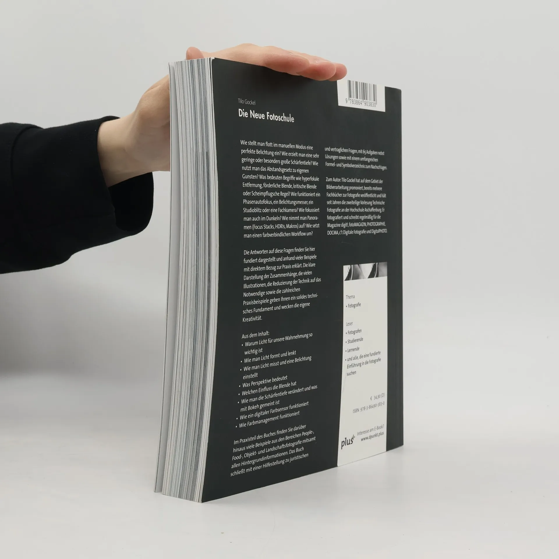 Je besser sich ein Fotograf mit den technischen Möglichkeiten seines Metiers auskennt, desto leichter kann ihn seine Vorstellungskraft zu kreativen Ergebnissen führen. Hier setzt Tilo Gockels Neue Fotoschule an: bei der Beherrschung der Technik. Die Grundlagenkapitel starten mit den Themen Licht, Belichtung, Lichtmessung, Lichtformer, Blitzlicht, Optik, Kameratechnik und dem Rechnen mit Lichtwerten. Dann folgen die Techniken in der digitalen Dunkelkammer und die Multishot-Techniken wie die Panoramafotografie, das High Dynamic Range Imaging und das Focus Stacking.Im Praxisteil wird das Gelernte dann anhand verschiedener Themen umgesetzt (Porträts, Stadt und Land, Food, Produkte und Makros). Das Buch schließt mit einem Anhang zu rechtlichen Fragestellungen, einem Symbolverzeichnis sowie einer umfangreichen Aufgabensammlung mit Lösungen.