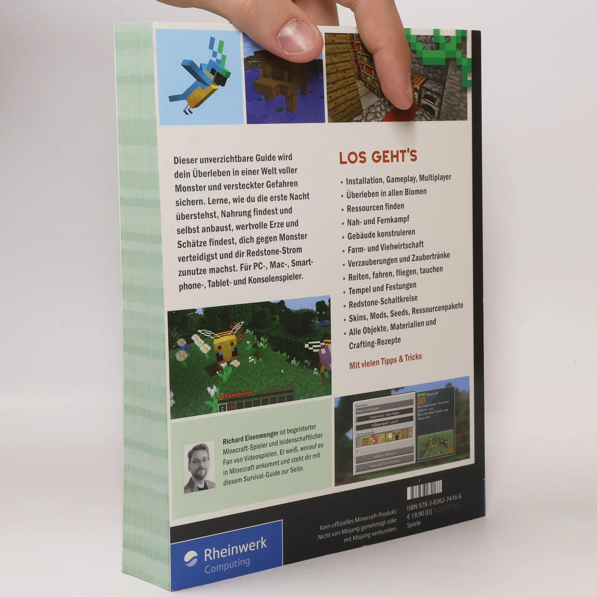 Dieser unverzichtbare Guide sichert dein Überleben in einer Welt voller Monster und Gefahren. Zu Beginn lernst du, wie du die erste Nacht überstehst, Nahrung findest und dich mit Ressourcen versorgst. Anschließend erfährst du, wie du Gebäude errichtest, Farmen und kuriose Maschinen konstruiert sowie tief unter der Erde nach Schätzen gräbst. Im umfangreichen Referenzteil findest du alle Rezepte für die Werkbank zum schnellen Nachschlagen. Und wenn dir der Sinn nach Tüfteleien steht: „Dein Survival-Buch“ enthält eine komplette Einführung in Redstone, den Minecraft-Strom. Geeignet für PC-, Mac-, Linux-, Smartphone-, Tablet- und Konsolenspieler. Plattformunabhängig und aktuell zu Minecraft 1.12. Aus dem Inhalt: Installation, Gameplay, Multiplayer Überleben in allen Biomen Ressourcen finden Nah- und Fernkampf Gebäude konstruieren Farm- und Viehwirtschaft Verzauberungen und Zaubertränke Reiten, fahren, fliegen Redstone-Schaltkreise Skins, Mods, Seeds, Ressourcenpakete Alle Objekte, Materialien und Crafting-Rezepte Mit vielen Tipps & Tricks Die Fachpresse zur Vorauflage: werd-fachinformatiker. de: »Ein ausgezeichnetes Nachschlagewerk, das jeder Minecraft-Fan besitzen sollte.«