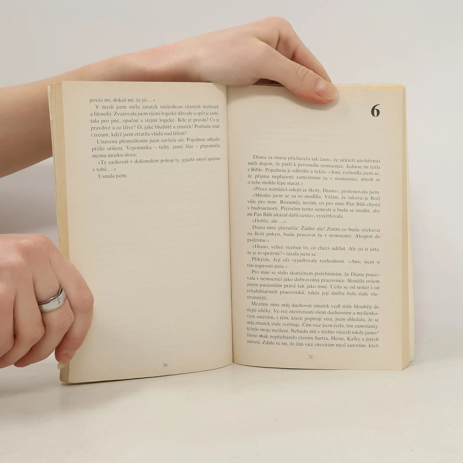Příběh Joni Eareckson, která v dospívání hledá smysl a náplň svého života a stává se křesťankou. Přesto je se svým životem nespokojená a prosí Boha o změnu. V sedmnácti letech je po úrazu při skoku do vody hospitalizována v nemocnici a je jí diagnostikováno poranění míchy mezi čtvrtým a pátým obratlem s následkem ochrnutí všech končetin. Joni podstupuje boj sama se sebou, se svým tělem i vírou. Nechce se smířit s tím, že již nebude moci chodit. Hledá smysl svého zranění a věří v Boží pomoc. Úraz chápe jako zkoušku víry, po které jí Bůh zázračně uzdraví. Při hospitalizaci v nemocnicích i rehabilitačním centru prochází Joni střídavě depresemi a nadějemi. Postupně se začne vyrovnávat s trvalostí svého postižení, učí se nezávislosti na cizí pomoci a také kreslit pomocí úst. Díky rodině, přátelům a nezdolné víře v Boží prozřetelnost dokáže se nakonec vyrovnat se svým údělem a pochopit jeho smysl. Prostřednictvím kreseb se stane známou osobností a šíří své zkušenosti a svědectví pomocí televize, článků a různých přednášek k ostatním lidem. Kniha je rozdělena do šestnácti kapitol, obsahuje úvod a závěr. Autorka popisuje události, myšlenky i pocity, které ji provázeli od počátku nehody až k vyrovnání se s postižením a nalezením jeho smyslu. V knize je znázorněna důležitost pomoci rodiny, podpory přátel, víry a možnosti seberealizace.