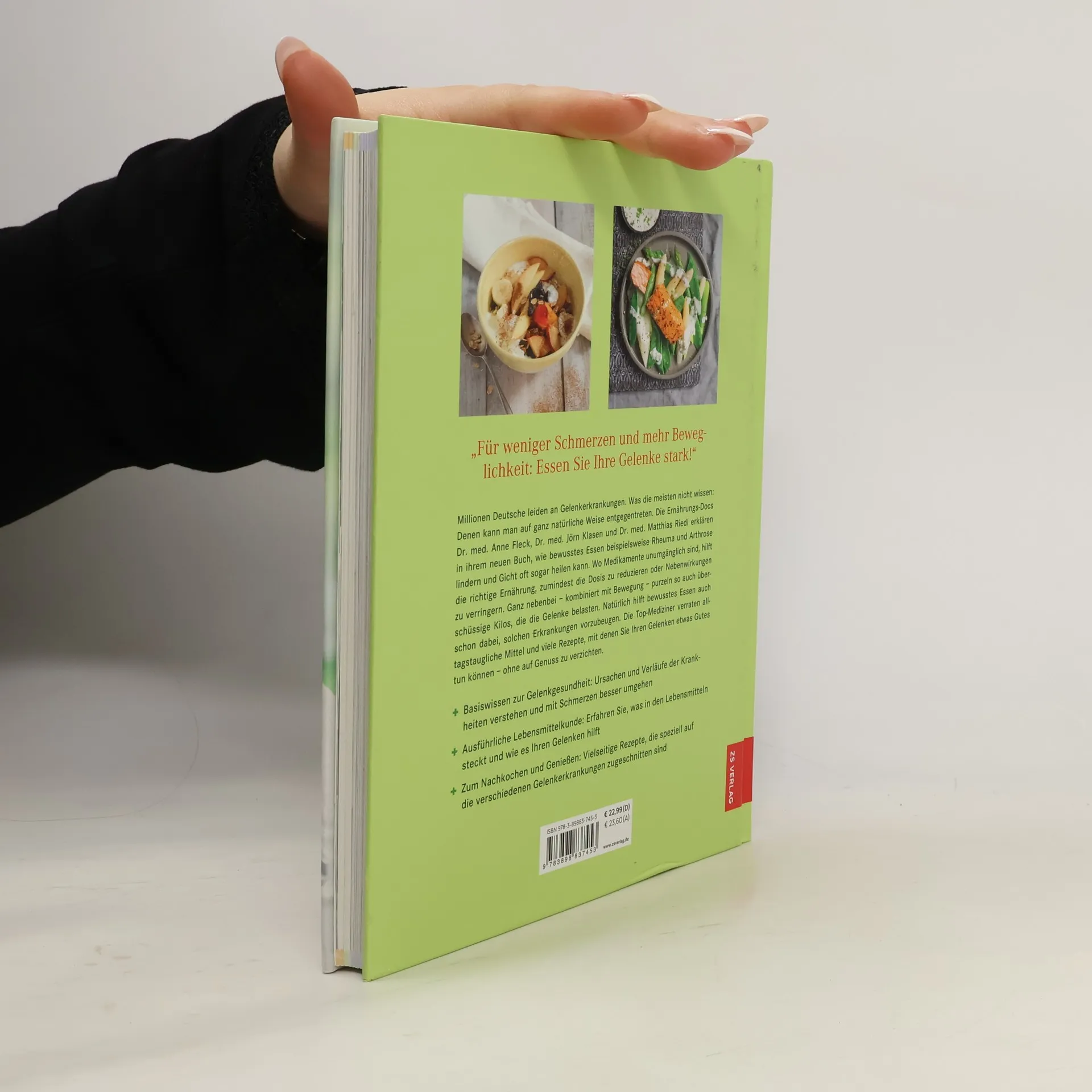 Fünf Millionen Menschen in Deutschland leiden unter Arthrose und 1,5 Millionen Deutsche klagen über rheumatische Erkrankungen, immer öfter auch Kinder. Sind Rheuma und Arthrose Volkskrankheiten, mit denen man leben muss? „Nein!“ sagen die Ernährungs-Docs in ihrem insgesamt dritten Buch, diesmal zum Thema Gelenke. Die Bestsellerautoren Dr. med. Matthias Riedl, Dr. med. Anne Fleck und Dr. med. Jörn Klasen erklären in ihrem Begleitbuch zur TV-Sendung „Die Ernährungs-Docs“, dass sich durch eine Umstellung auf gesunde Ernährung und durch regelmäßige Bewegung Beschwerden lindern lassen und Medikamente reduziert werden können. Des Weiteren gibt das Ärzte-Trio auf 192 bebilderten Buchseiten wertvolle Experten-Tipps, informiert über Ursachen und Verläufe der Gelenkerkrankungen, klärt über Mythen auf und verrät uns die besten Rezepte.