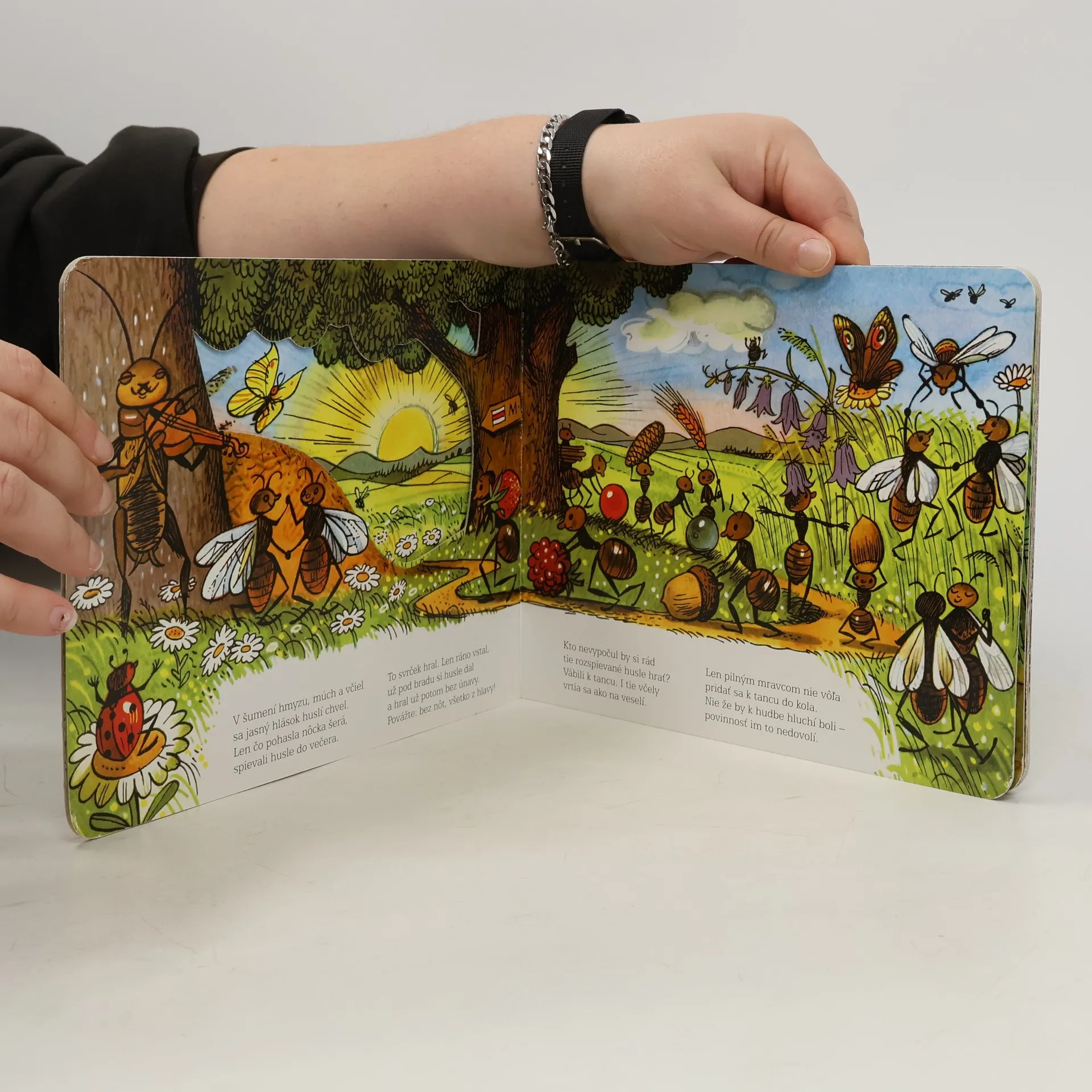 Farebné vysekávané leporelo s pestrými ilustráciami zo sveta chrobáčikov. Dojemný príbeh o ľahkovážnom svrčkovi a usilovných mravcoch skvele prebásnila slovenská poetka Maša Haľamová. Tento krásny príbeh o tom, ako si kamaráti v núdzi pomáhajú, poznajú celé generácie slovenských detí.