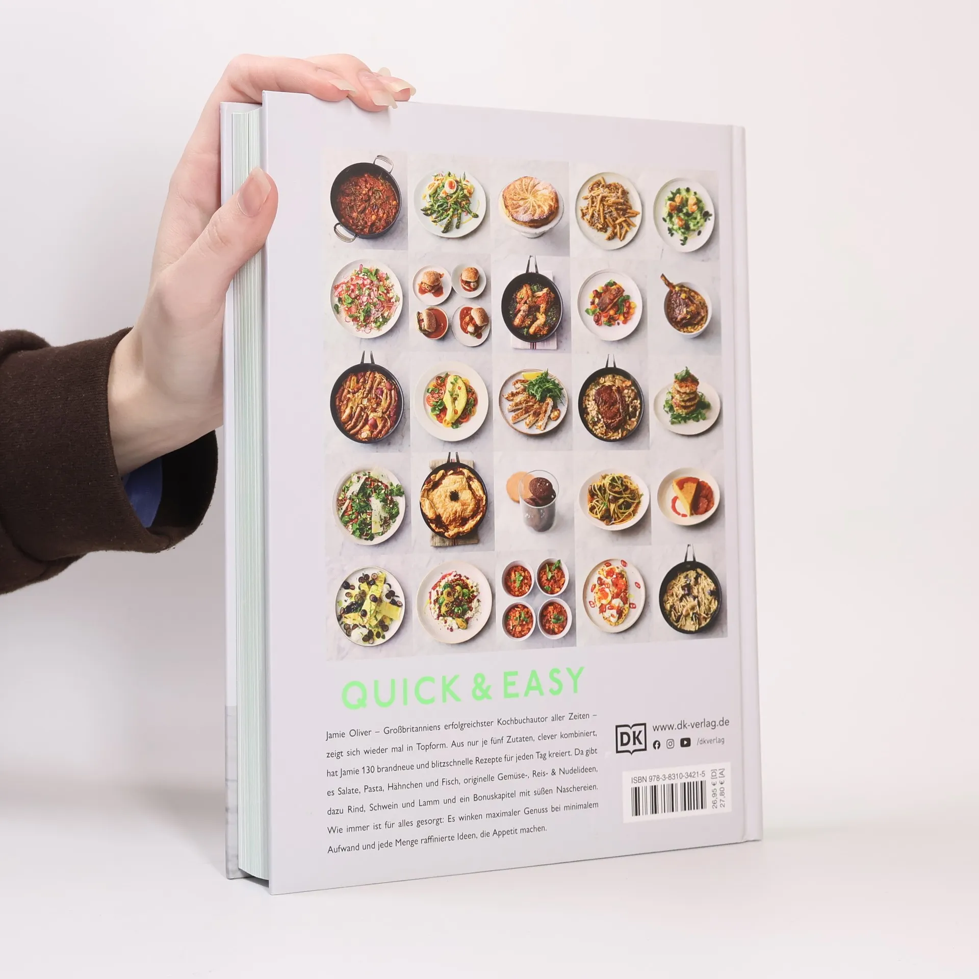 Kochen muss nicht kompliziert sein – „Jamies 5-Zutaten-Küche“ wird schnell zu Ihrem besten Freund in der Küche. Dieses Buch zeigt, dass gutes Essen einfach zubereitet werden kann, indem man nur fünf Hauptzutaten pro Rezept benötigt. Die Zubereitung ist schnell, und die Mahlzeit ist entweder im Handumdrehen fertig oder der Backofen übernimmt den Rest. Hier geht es um Klasse statt Masse und um ein wenig Aufmerksamkeit in der Küche, was mit einem großartigen Geschmackserlebnis belohnt wird. Jedes Rezept wurde getestet, um sicherzustellen, dass die Gerichte unkompliziert, preiswert und schnell zubereitet sind – ideal für jeden Tag der Woche. Wählen Sie aus über 130 inspirierenden Rezepten, darunter Hähnchen, Rind-, Schweine- und Lammfleisch, Fisch, Eier, Gemüse, Salate, Pasta, Reis und süße Leckereien. Beispiele sind das Indische Brathuhn, ein ganzes Hähnchen mit Currypaste auf Kartoffeln und Blumenkohl, oder die einfache Fischpastete mit geräuchertem Schellfisch, Frühlingszwiebeln und Spinat, alles in knusprigem Filoteig. Jedes Rezept enthält eine bebilderte Zutatenliste, Portions- und Zeitangaben, eine leicht verständliche Anleitung, Nährwertübersicht und ein tolles Foto des Gerichts. Dieses Buch ist besonders benutzerfreundlich und perfekt für Menschen mit wenig Zeit.