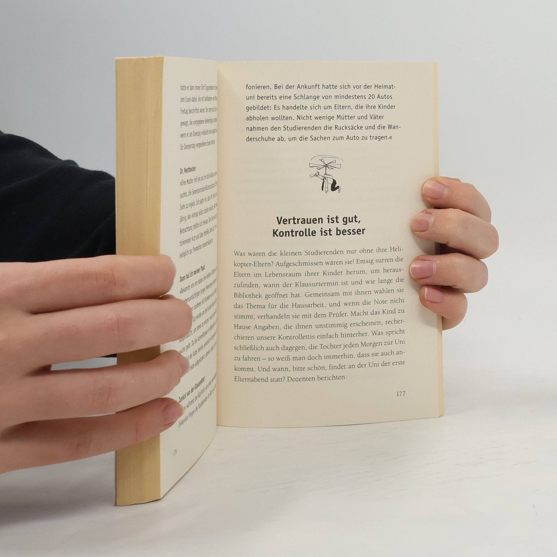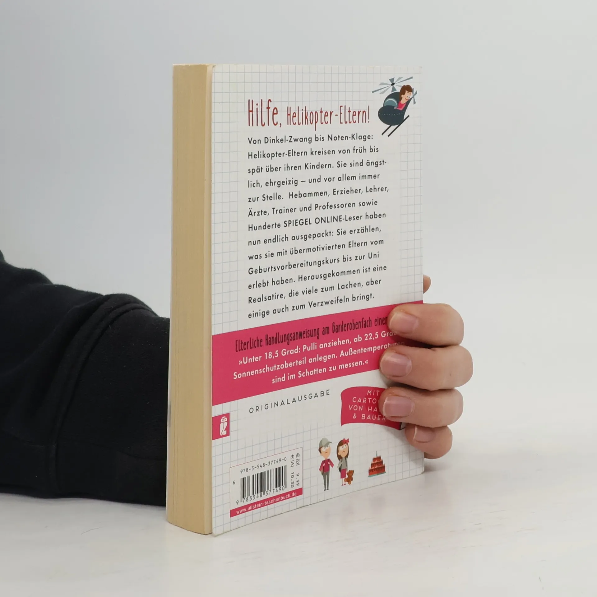 Von Dinkel-Zwang bis Noten-Klage: Helikopter-Eltern kreisen über ihren Kindern und fliegen ihnen sogar bis in die Uni hinterher. Sie sind ängstlich, ehrgeizig — und vor allem nervig. Wie sie ihren Kindern und dem Rest der Welt das Leben zur Hölle machen, davon erzählen Lena Greiner und Carola Padtberg in diesem Buch. Eine amüsante Realsatire darüber, wie Kinder vom Säuglings- bis ins Erwachsenenalter von ihren Eltern überwacht werden: ein schonungsloser Frontbericht aus dem Familienleben. Eltern, Kinder, Hebammen, Erzieher, Lehrer, Professoren und Studienberater haben ihre besten Episoden an die Redaktion von SPIEGEL ONLINE gesandt und erzählen, was sie mit übermotivierten Eltern erlebt haben. Spleenig, grotesk — und leider wahr.
