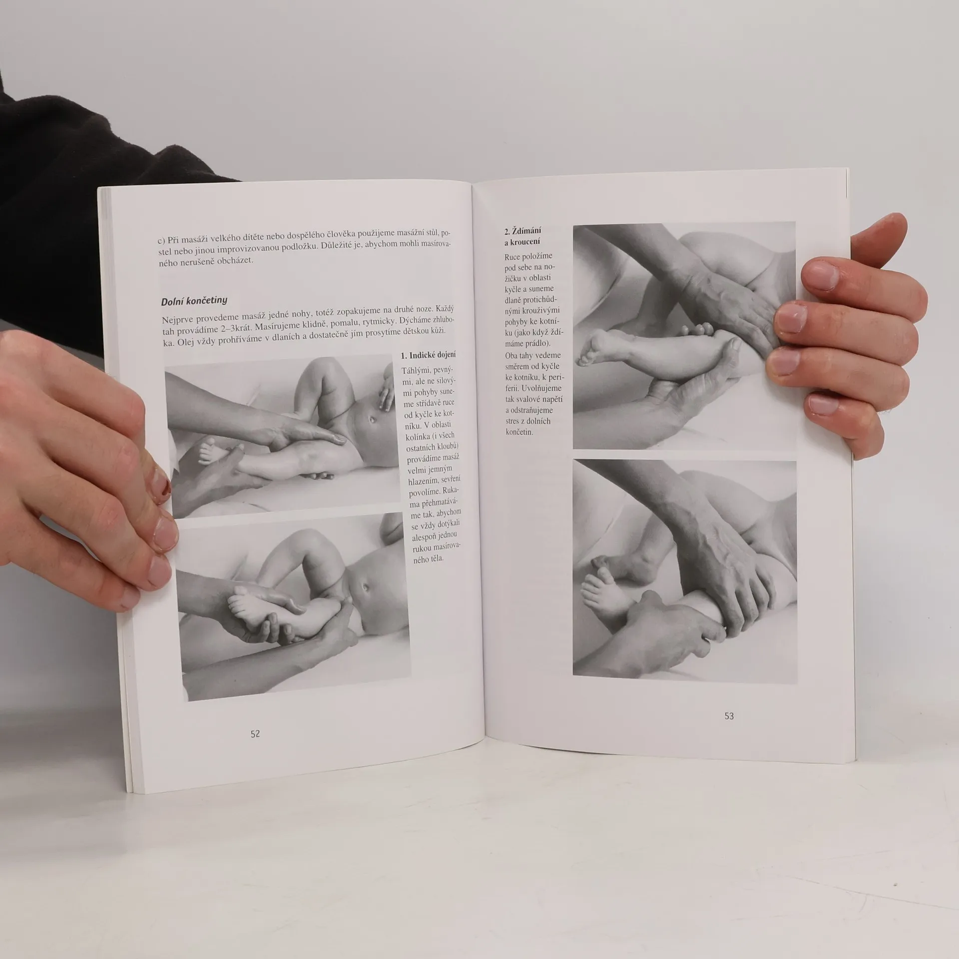 Postup při masáži, masáže jednotlivých částí těla, masáže v těhotenství a masáže novorozence, masáže u nemocných dětí. Názorné a přehledné uvedení do techniky masáží dětí a kojenců určené ať už pro výukové kurzy, pro profesionální pracovníky i pro samotné rodiče. Po teoretickém uvedení do problematiky masáží (účinnost masáží u zdravých i nemocných dětí, význam doteku jako součásti komunikace s dítětem, souvislosti a aroma- a muzikoterapií...) tvoří jádro knihy vlastní technika masáže, jež je ilustrována na cca. 75 fotografiích, které zájemcům pomohou osvojit si vlastní postup.