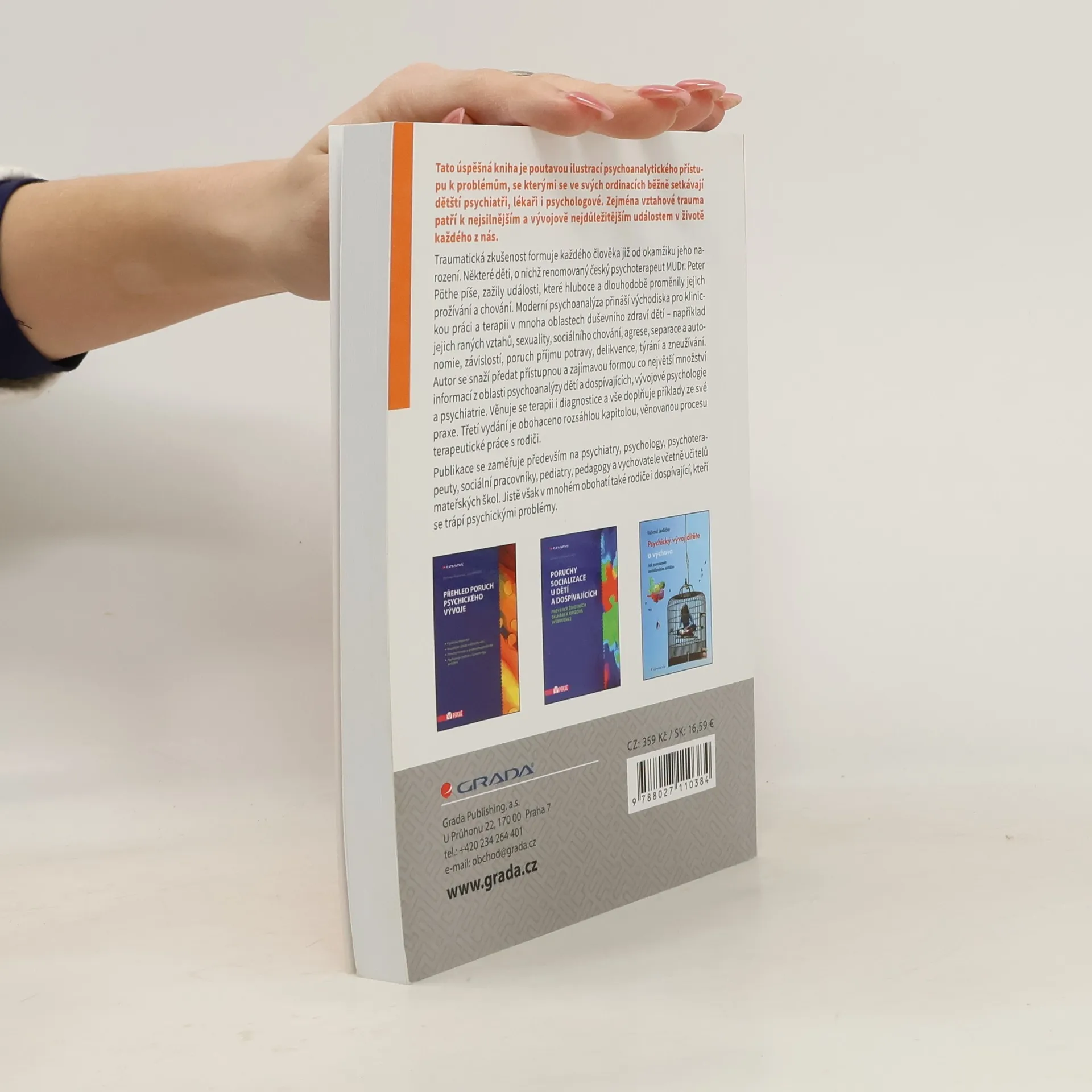 Třetí vydání úspěšné publikace je poutavou ilustrací psychoanalytického přístupu k problémům, se kterými se ve svých ordinacích běžně setkávají dětští psychiatři, lékaři i psychologové. Zejména vztahové trauma patří k nejsilnějším a vývojově nejdůležitějším událostem v životě každého z nás. Traumatická zkušenost formuje každého člověka již od okamžiku jeho narození. Některé děti, o nichž renomovaný český psychoterapeut MUDr. Peter Pöthe píše, zažily události, které hluboce a dlouhodobě proměnily jejich prožívání a chování. Moderní psychoanalýza přináší východiska pro klinickou práci a terapii v mnoha oblastech duševního zdraví dětí – například jejich raných vztahů, sexuality, sociálního chování, agrese, separace a autonomie, závislostí, poruch příjmu potravy, delikvence, týrání a zneužívání. Autor se snaží předat přístupnou a zajímavou formou co největší množství informací z oblasti psychoanalýzy dětí a dospívajících, vývojové psychologie a psychiatrie. Věnuje se terapii i diagnostice a vše doplňuje příklady ze své praxe. Třetí vydání je obohaceno rozsáhlou kapitolou, věnovanou procesu terapeutické práce s rodiči. Publikace se zaměřuje především na psychiatry, psychology, psychoterapeuty, sociální pracovníky, pediatry, pedagogy a vychovatele včetně učitelů mateřských škol. Jistě však v mnohém obohatí také rodiče i dospívající, kteří se trápí psychickými problémy.