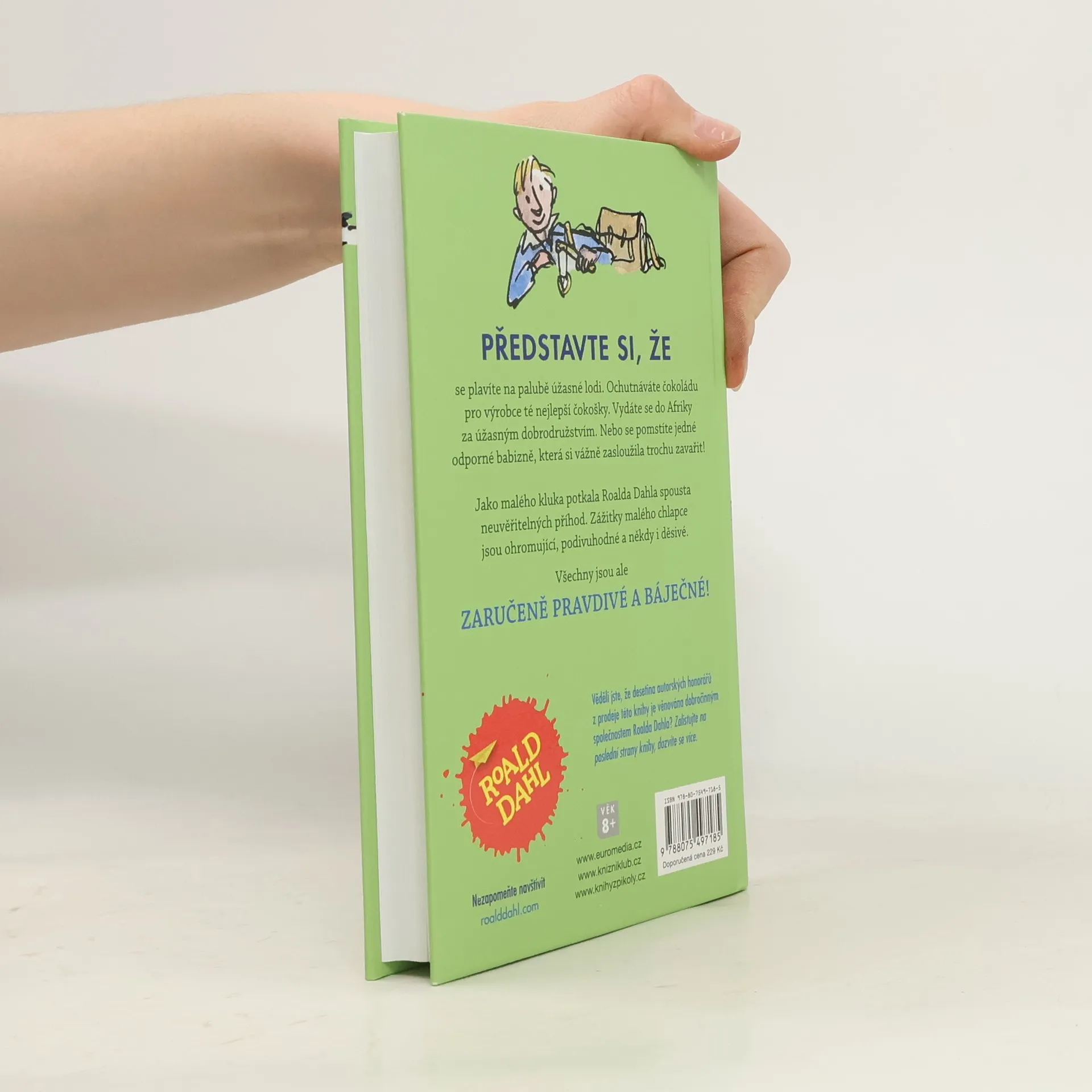 Jako malého kluka potkalo Roalda Dahla spoustu neuvěřitelných příhod. Navštěvoval internátní školu, kde se setkal s šikanou a přísnými tresty, které si dnes už sotva dovedeme představit. (Už asi tušíte, odkud se vzala strašná slečna Kruťáková a Drtičova základní škola!) Prázdniny trávil na palubě rybářské lodi. Testoval čokoládu pro pana Cadburyho. Zažil úžasné africké dobrodružství. Se svými kamarády se pomstil paní Pratchettové, majitelce cukrárny plné báječných laskominek, ale taky pěkně odporné babizně, která si zasloužila trochu zavařit. Zážitky malého chlapce jsou veselá, podivuhodná i děsivá dobrodružství. Všechna jsou ale zaručeně pravdivá. Pro dospělé i malé čtenáře od 8 let.