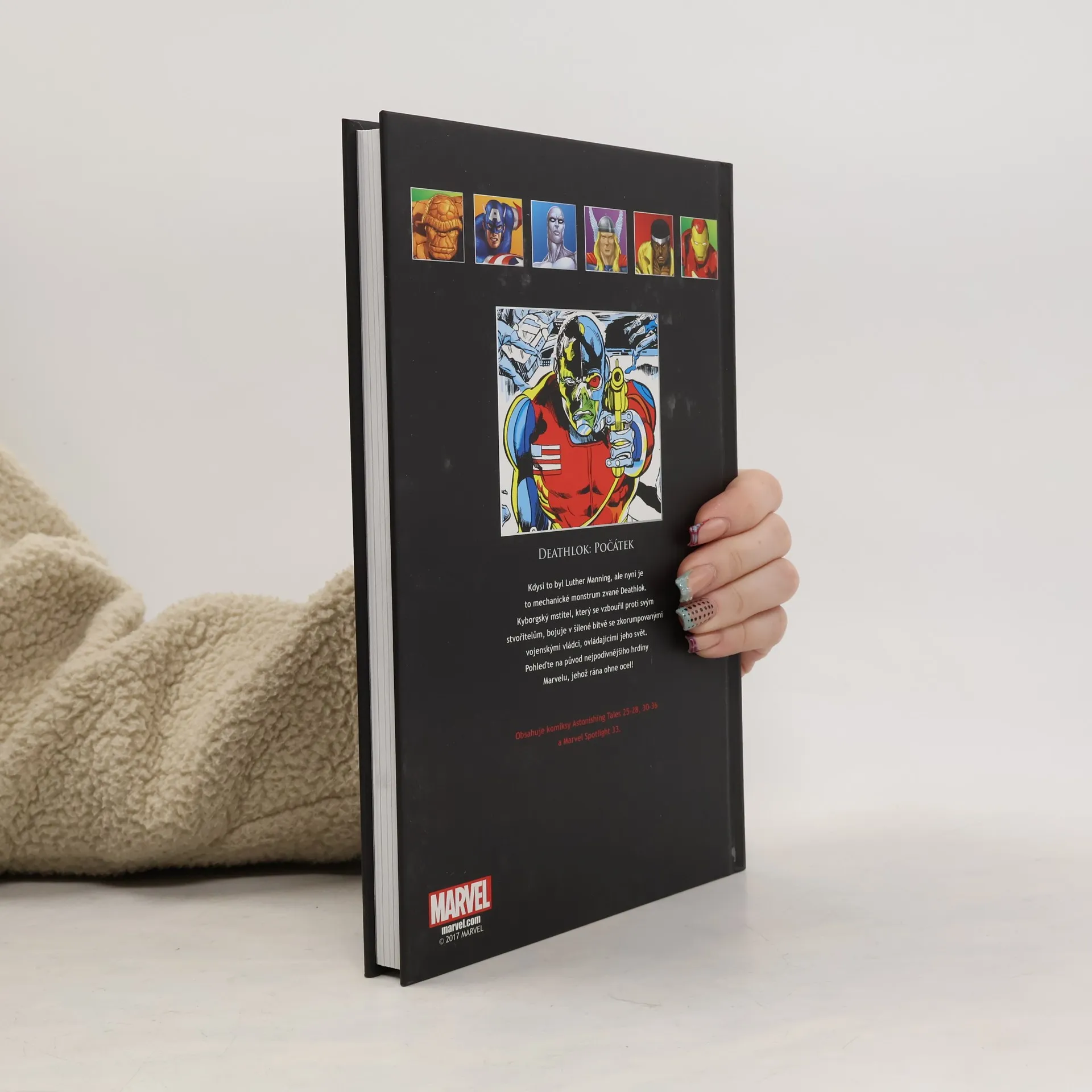 Kdysi to byl Luther Manning, ale nyní je to mechanické monstrum zvané Deathlok. Kyborgský mstitel, který se vzbouřil proti svým stvořitelům, bojuje v šílené bitvě se zkorumpovanými vojenskými vládci, ovládajícími jeho svět. Pohledťe na původ nejpodivnějšího hrdiny Marvelu, jehož rána ohne ocel! Obsahuje komiksy Astonishing Tales 25-28, 30-36 a Marvel Spotlight 33.