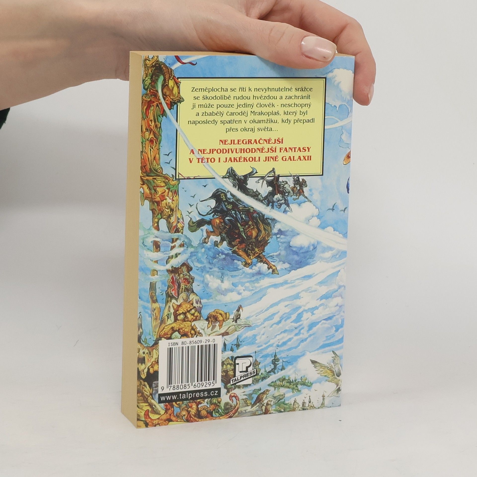 Zeměplocha se řítí k nevyhnutelné srážce se škodolibou rudou hvězdou a zachránit ji může pouze jediný člověk – neschopný a zbabělý čaroděj Mrakoplaš, který byl naposledy spatřen v okamžiku, kdy přepadl přes okraj světa... Nejlegračnější a nejpodivuhodnější fantasy v této i jakékoli jiné galaxii!!!