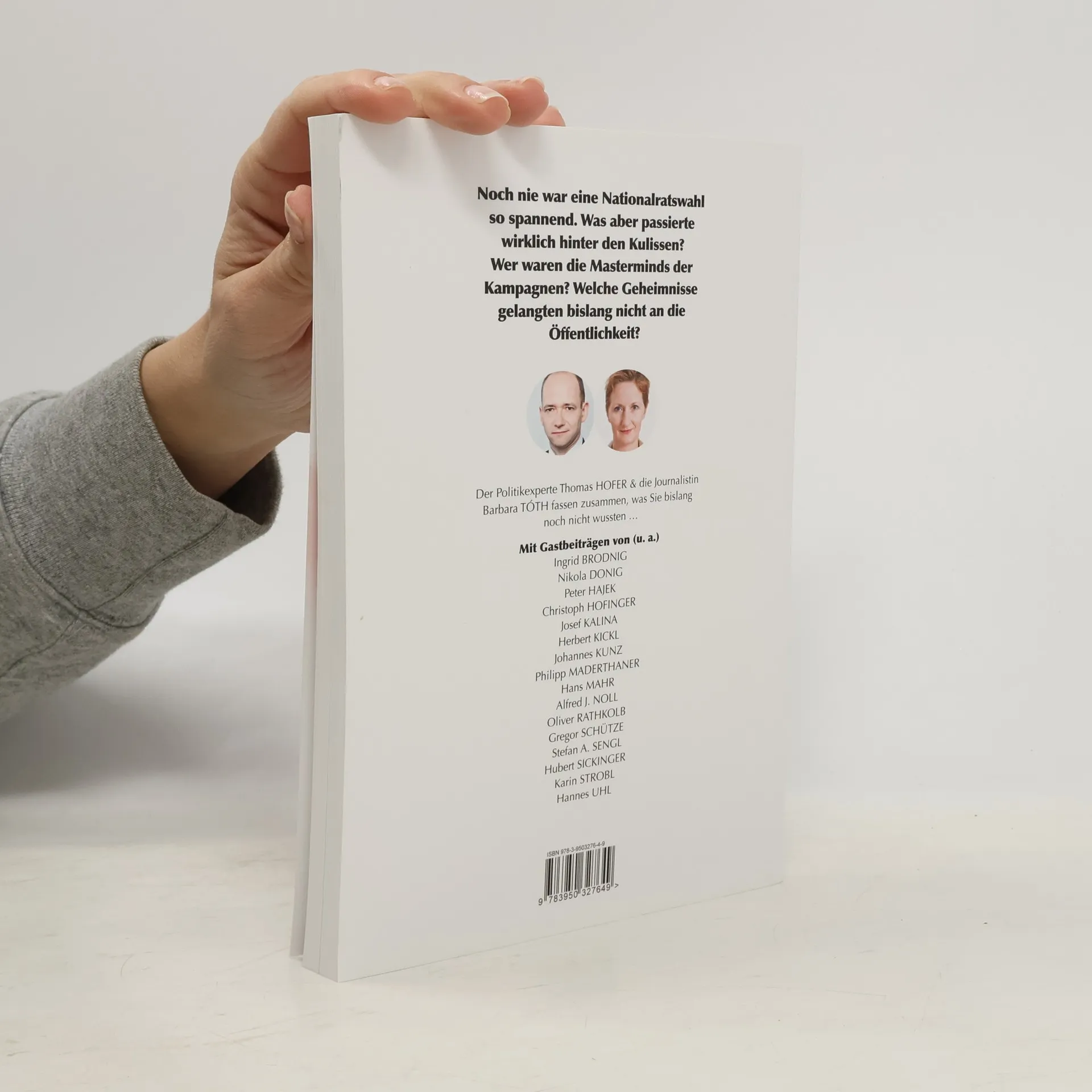 Noch nie war eine Nationalratswahl so spannend. Was aber passierte wirklich hinter den Kulissen? Wer waren die Masterminds der Kampagnen? Welche Geheimnisse gelangten bislang nicht an die Öffentlichkeit? Der Politikexperte Dr. Thomas HOFER & die Jourmalistin Mag. Barbara TOTH fassen zusammen, was Sie bislang noch nicht wussten … Mit Gastbeiträgen von • Ingrid BRODNIG • Nikola DONIG • Peter HAJEK • Christoph Hofinger • Josef KALINA • Herbert KICKL • Johannes Kunz • Philip MADERTHANER • Hans MAHR • Alfred J. NOLL • Gregor SCHÜTZE • Stefan SENGL • Hubert SICKINGER • Karin STROBL • Hannes U HL u. v. m.