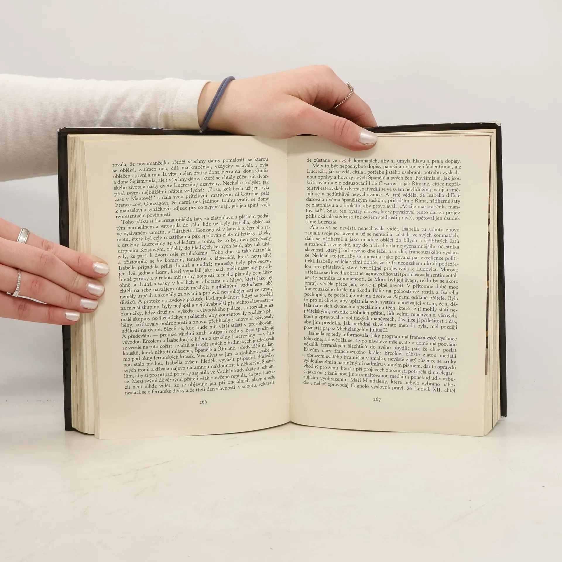 Tajemná osobnost dcery papeže Alexandra VI. lákala jak prozaiky a dramatiky, tak historiky. Autorka této monografie, italská historička, se na svůj úkol svědomitě připravila. Suverénně zvládla nejen literární prameny archívní doklady, ale i korespondenci a zprávy vyslanců. Plasticky a barvitěpopisuje prostředí upadající renesance, život na papežském dvoře a každodenní život aristokracie, zahraničně politické plány a diplomacii, rozmach kultury a umění, průvody a slavnosti, módu a šperky. Lucreziinu osobnost líčí v rámci románové licence.