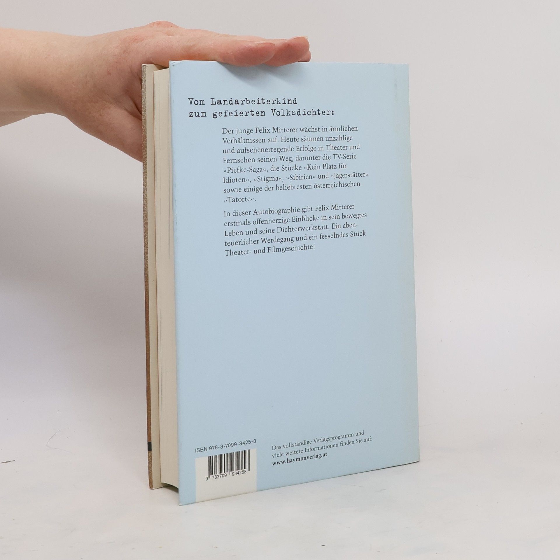 Geboren als dreizehntes Kind einer Kleinbäuerin, wird Felix Mitterer von seiner Mutter an deren beste Freundin „verschenkt“. Das Aufwachsen ist geprägt von Armut und der Aggressivität seiner Adoptivmutter. Als in seinem Heimatdorf ein Film gedreht wird, sieht der junge Felix darin eine Chance auf Veränderung. Felix Mitterers Karriere umfasst zahlreiche Erfolge in Theater, Film und Fernsehen, darunter die TV-Serie „Piefke-Saga“ sowie die Stücke „Kein Platz für Idioten“, „Stigma“, „Sibirien“ und „Jägerstätter“. Seine Drehbücher zu beliebten „Tatorten“ machen ihn zu einem der meistgespielten Dramatiker in Österreich. Mitterer hat ein besonderes Talent dafür, außergewöhnliche Schicksale dramaturgisch zu inszenieren, wobei sein Fokus oft auf Außenseitern und sozial Randständigen liegt, die gegen den Strom schwimmen. Seine Sprache spiegelt seine Liebe zur österreichischen Mundart wider. In dieser fesselnden Autobiographie teilt Mitterer erstmals seine Beweggründe für das Schreiben und das Leben, beleuchtet schmerzhafte und schöne Erlebnisse und ergänzt seine Erzählung mit Aufnahmen aus seinem Privatarchiv sowie den Archiven der Theater- und Fernsehanstalten. Sein langjähriger Verleger Michael Forcher hat ein Grußwort beigesteuert.