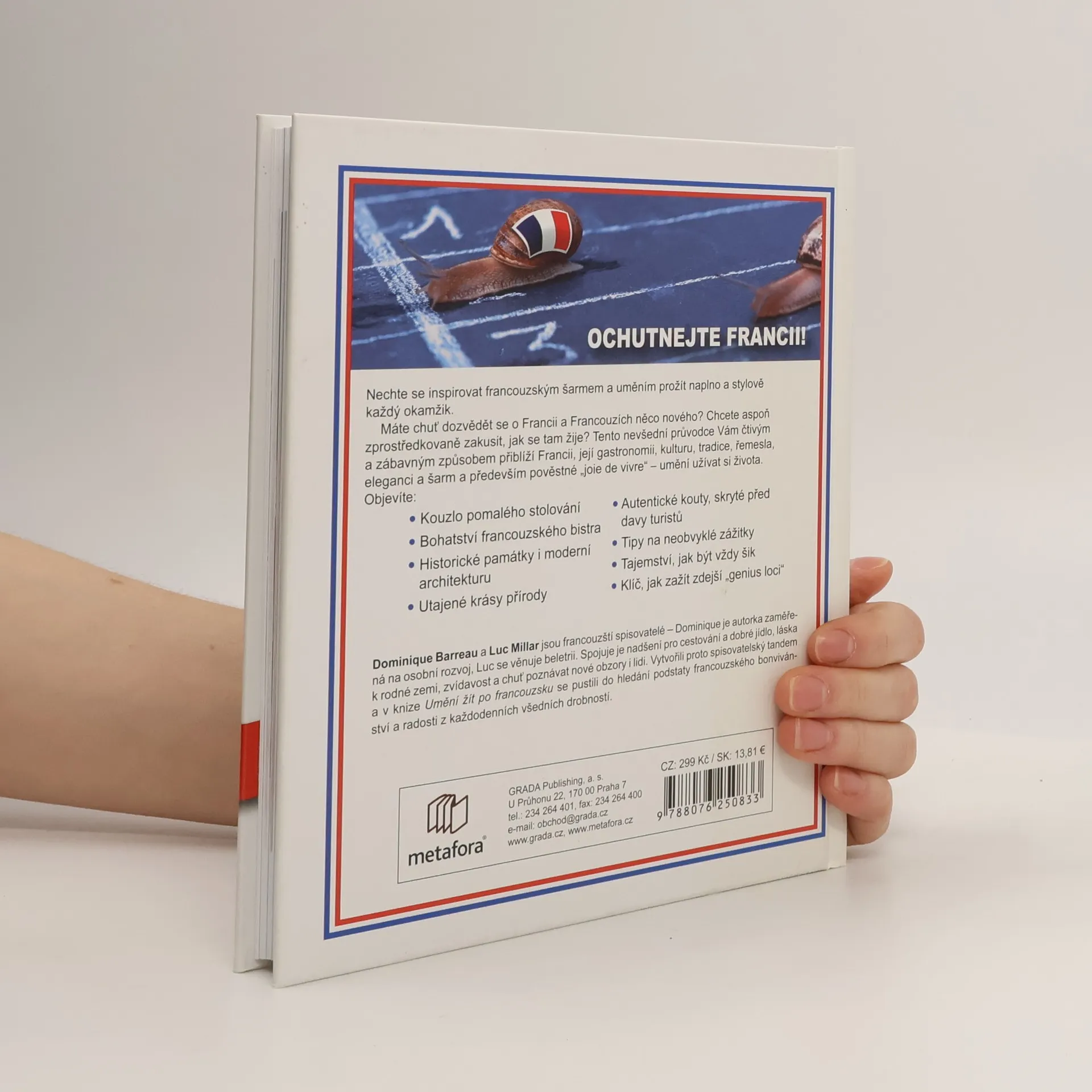 Chcete se dozvědět něco nového o Francii a zakusit její životní styl? Sáhněte po knize, která zábavným způsobem přibližuje francouzskou gastronomii, kulturu, tradice a šarm. Kapitoly vás zavedou na místa, kde je kladen důraz na dobré jídlo, oblékání a unikátní turistické památky. Pokud chcete poznat Francii jinak než skrze klasické průvodce, tato kniha je ideální volbou, zejména pro ty, kteří rádi objevují méně známé kouty země. Zjistíte, že francouzské „nabobství“ je často jen maska, za kterou se skrývá bonvivánství. Typický Francouz, potkávaný v bistrech, je společenský a rád slaví každou příležitost. Autoři vás provedou trhy, venkovskými slavnostmi a důležitými svátky, které jsou vždy spojeny s dobrým jídlem a pitím, což je pro Francouze zásadní. Místo notoricky známých turistických atrakcí vás kniha navede k méně vytíženým lokalitám, které stojí za to vidět. Objevte, jak se ve Francii žije naplno a s radostí každý den!