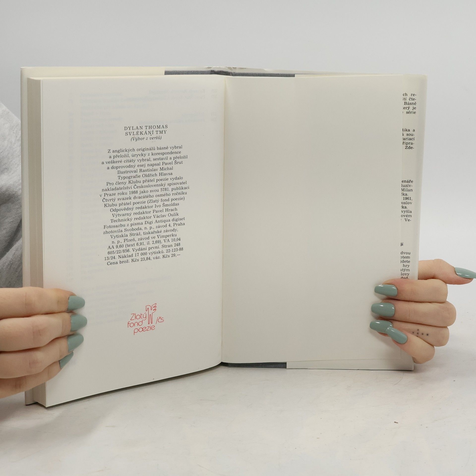 Dylan Thomas (1914–1953) vytvořil za svůj krátký život jedinečné dílo, které náleží ke klenotům anglicky psané poezie. Z anglických originálů jeho básní, úryvků z korespondence a citátů vybral, sestavil a přeložil a doprovodný esej napsal překladatel Pavel Šrut, který svazek doprovodil doslovem a životopisným pásmem.