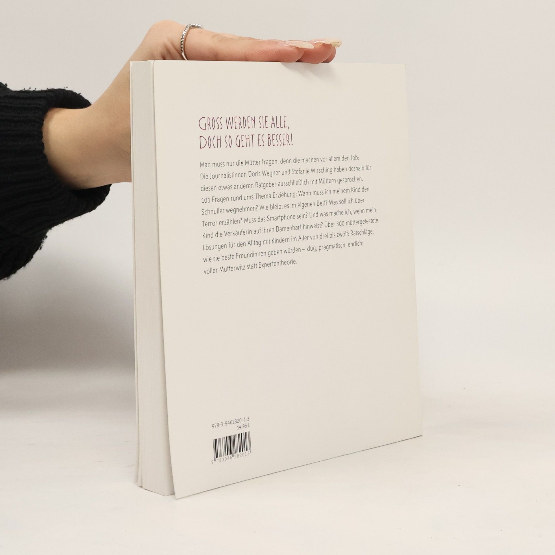 Groß werden Kinder alle, doch es geht so besser - wie dieser etwas andere Erziehungsratgeber beweist. Man muss nur die Mütter fragen, denn die machen den Job ja vor allem: Die Journalistinnen Doris Wegner und Stefanie Wirschung haben deshalb für dieses buch ausschließlich mit Müttern gesprochen. Und sie haben endlich ehrliche Antworten aus deren Trickkiste erhalten. 101 Fragen rund ums Thema Erziehung galt es zu beantworten: Wann muss ich meinem Kind den Schnuller wegnehmen? Wie bleibt es im eigenen Bett? Was soll ich über Terror erzählen? Muss das Smartphone sein? Und was mache ich, wenn mein Kind die Verkäuferin auf ihren Damenbart hinweist? Das Ergebnis: Über 300 müttergetestete Lösungen für den Alltag mit Kindern im Alter von drei bis zwölf: Ratschläge wie sie beste Freundinnen geben würden - klug, pragmatisch, ehrlich. Eben voller Mutterwitz statt grauer Expertentheorie.