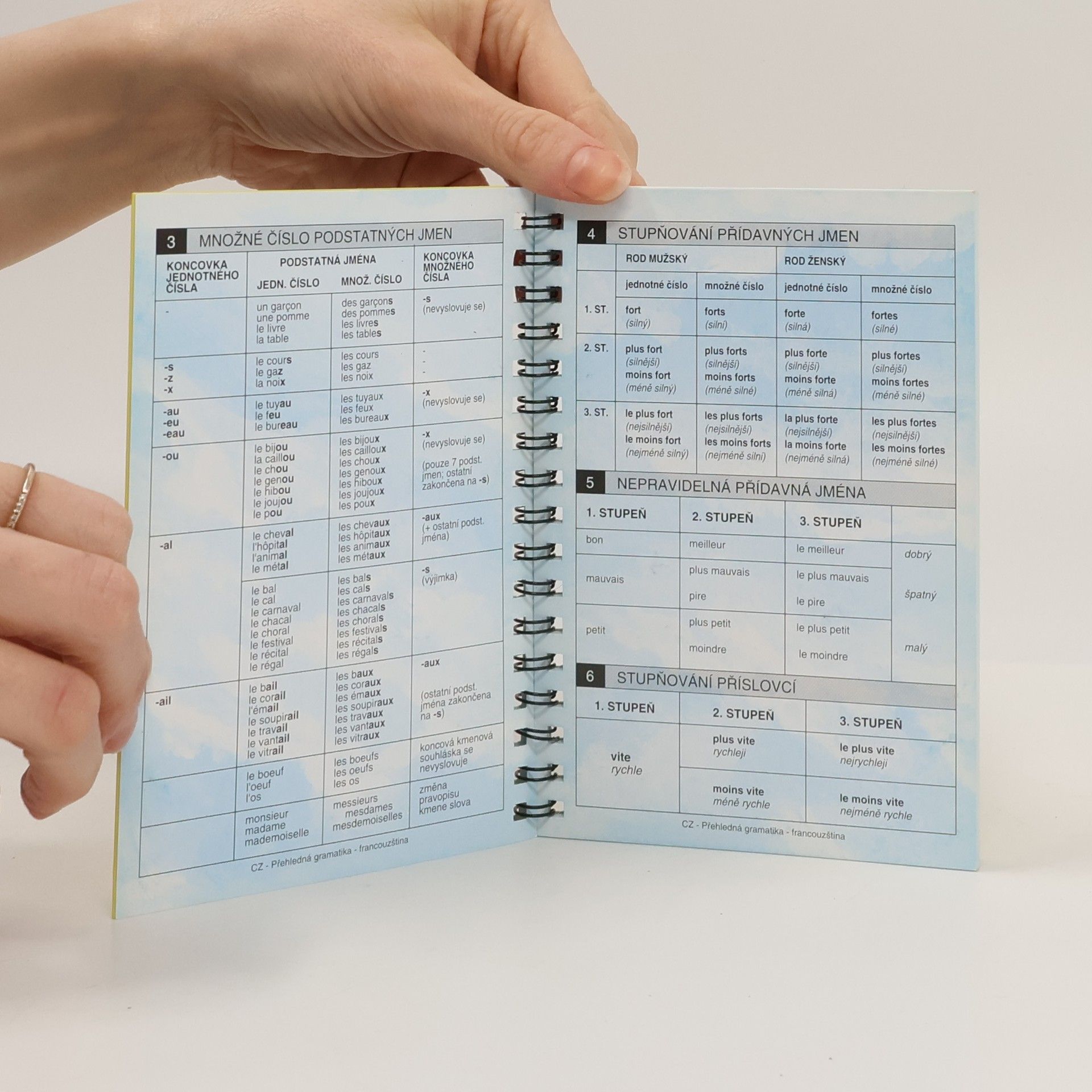 Tato publikace obsahuje 68 gramatických tabulek zpracovaných s důrazem na přehlednost a rychlý vyhledávací systém. Je zde uvedeno to nejdůležitější z francouzské gramatiky.