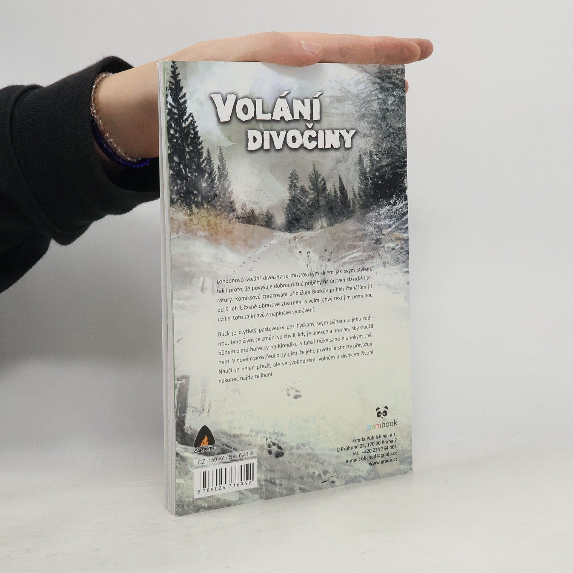 Londonovo Volání divočiny je mistrovským dílem jak svým stylem, tak i proto, že povyšuje dobrodružné příbehy na úroveň klasické literatury. Komiksové zpracování přibližuje Buckův příběh čtenářům již od 9 let. Úžasné obrazové ztvárnění a velmi čtivý text jim pomohou užít si toto zajímavé a napínavé vyprávění. Buck je čtyřletý pastevecký pes hýčkaný svým pánem a jeho rodinou. Jeho životse změní ve chvíly, kdy je unesen a prodán, aby služil během zlaté horečky na Klondiku a tahal těžké sáně hlubokým sněhem. V novém prostředí brzy zjistí, že jeho prvotní instinkty převažují. Naučí se nejen přežít, ale ve svobodném, volném a divoém životě nakonec najde zalíbení.